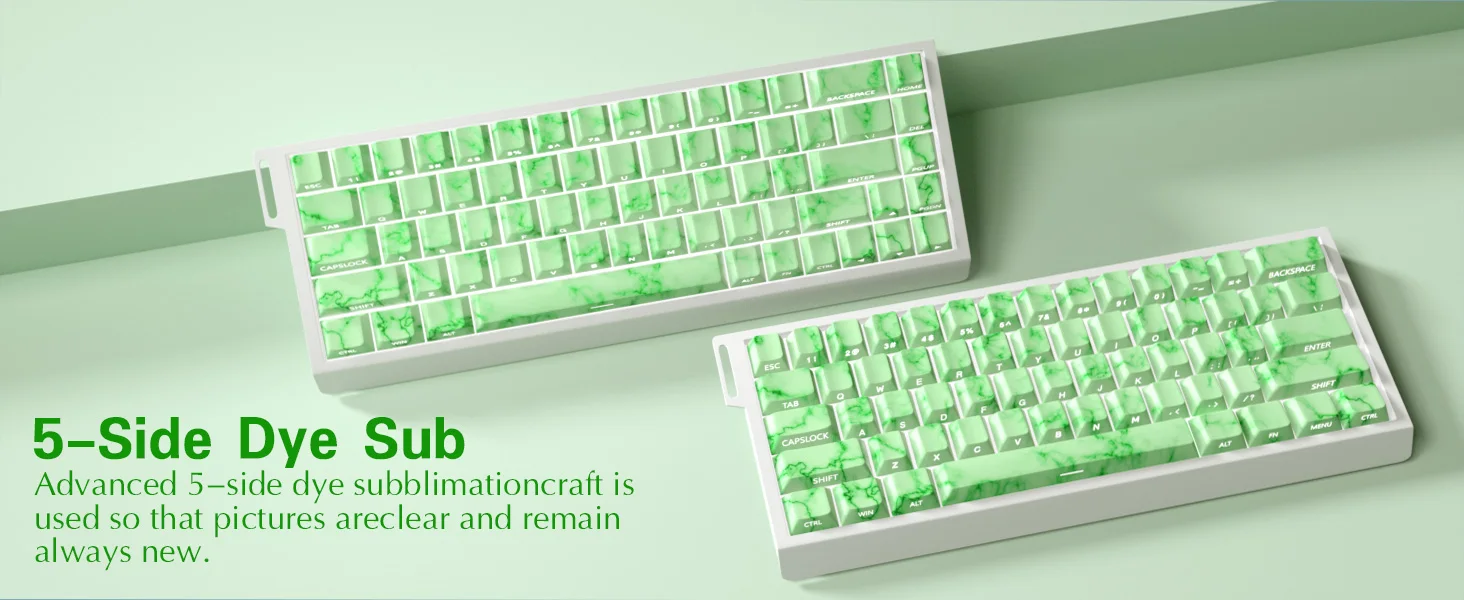 Teclas PBT: estas teclas con temática verde están hechas de material PBT de alta calidad, que es resistente a la fricción y se siente genial, lo que garantiza una mejor experiencia de usuario.