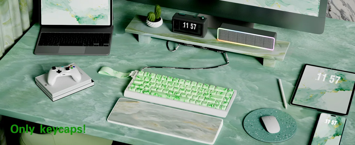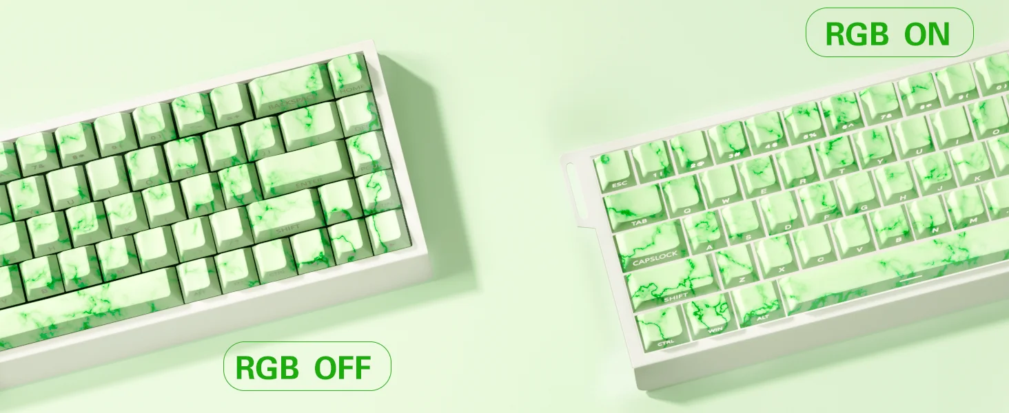 Estas teclas verdes translúcidas impresas lateralmente dejan entrar la luz desde el costado del teclado a través de las letras, y ya sea que apague o encienda el RGB, será la configuración verdaderamente minimalista que está buscando.