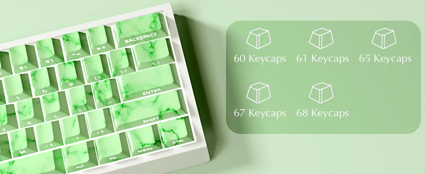 El kit de teclas es compatible con la mayoría de teclados mecánicos 60/61/65/67/68 con interruptores Cherry MX.La barra espacial es 6.25U