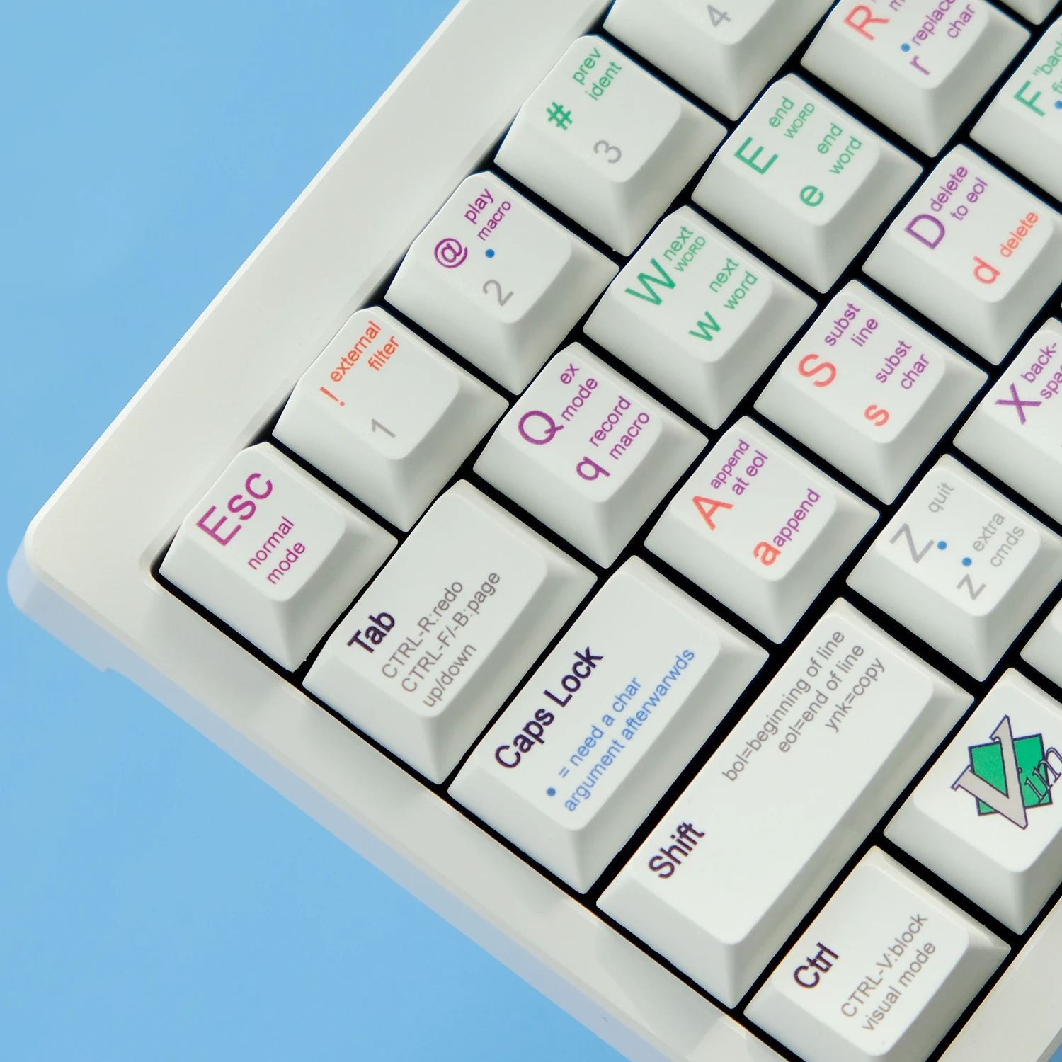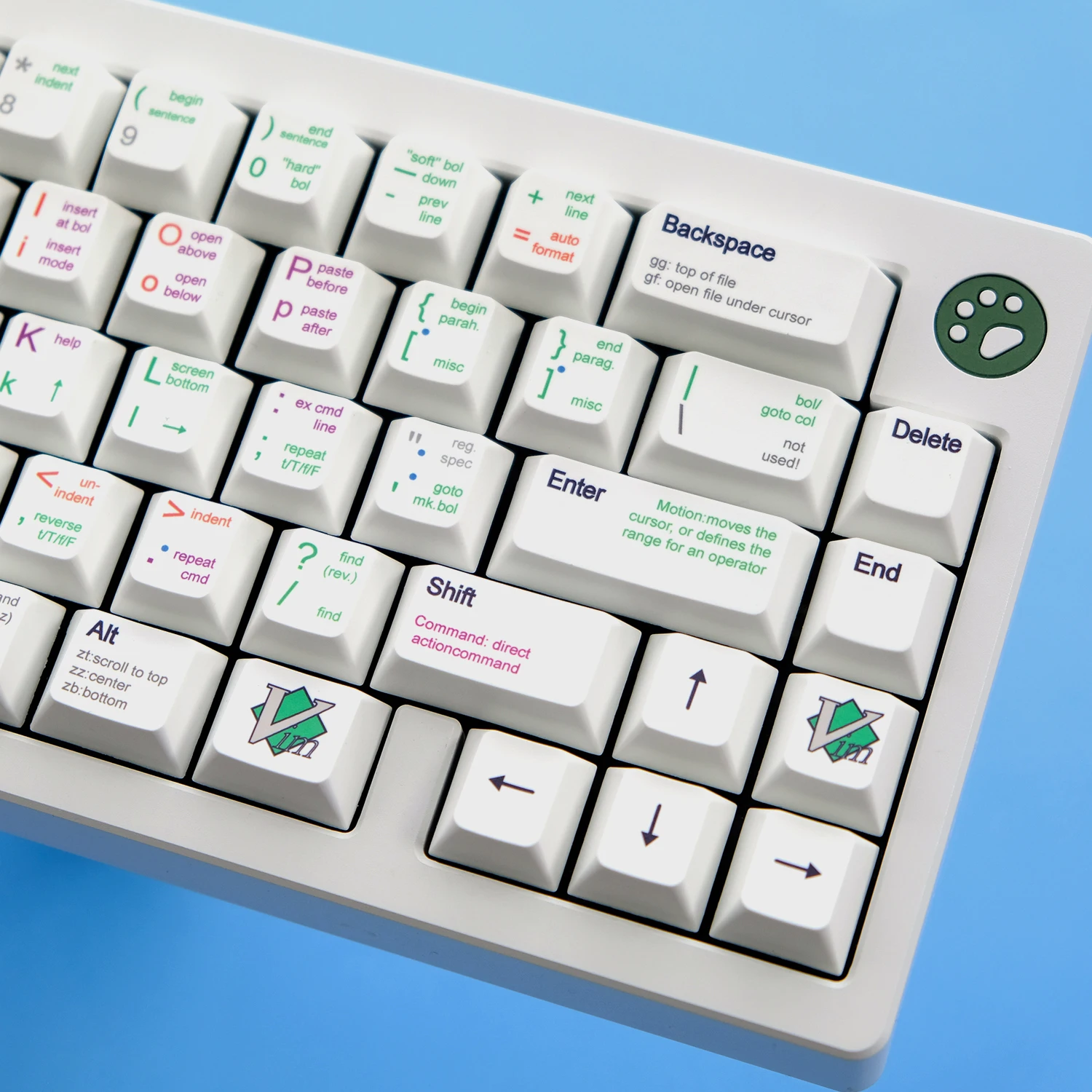 Comprar Teclas VIM de 131 teclas, perfil Cherry, programador de teclas GMK blanco, Teclado mecánico de sublimación de tinte PBT para interruptor MX 1.75U 2U