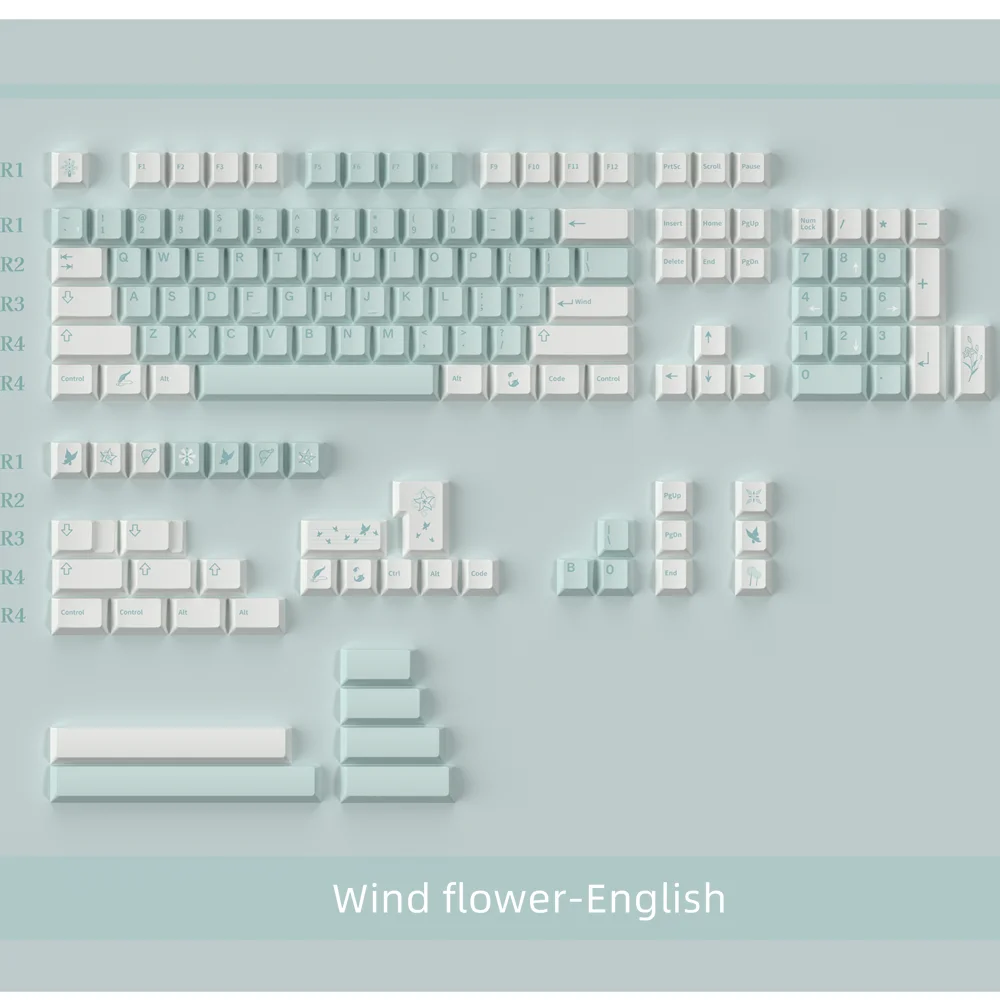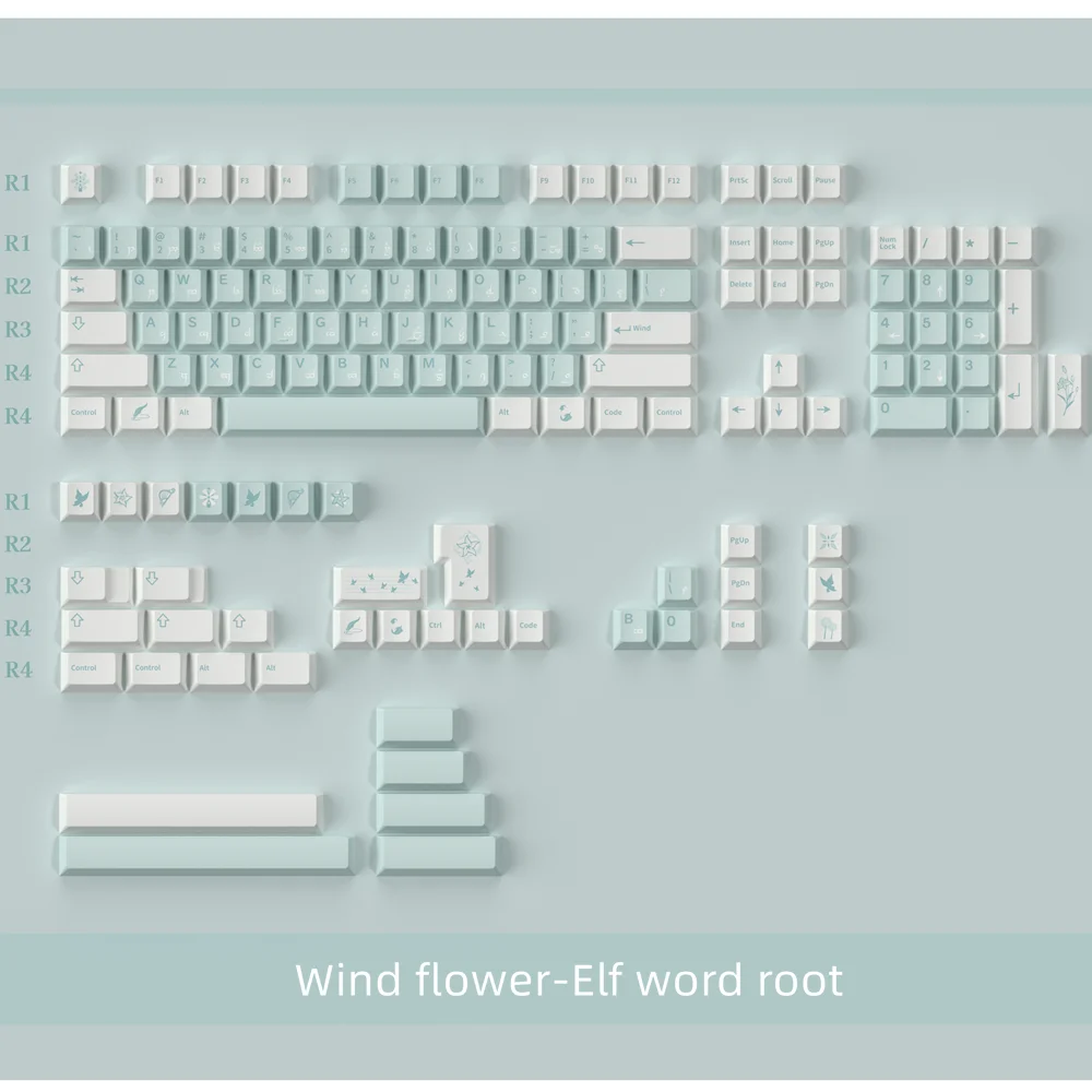 142 teclas Wind Flower Keycap 1,5mm de espesor Elf Word Root Cherry Profile DYE-Sublimation para teclado mecánico 61/64/68/75/78/84/87/108