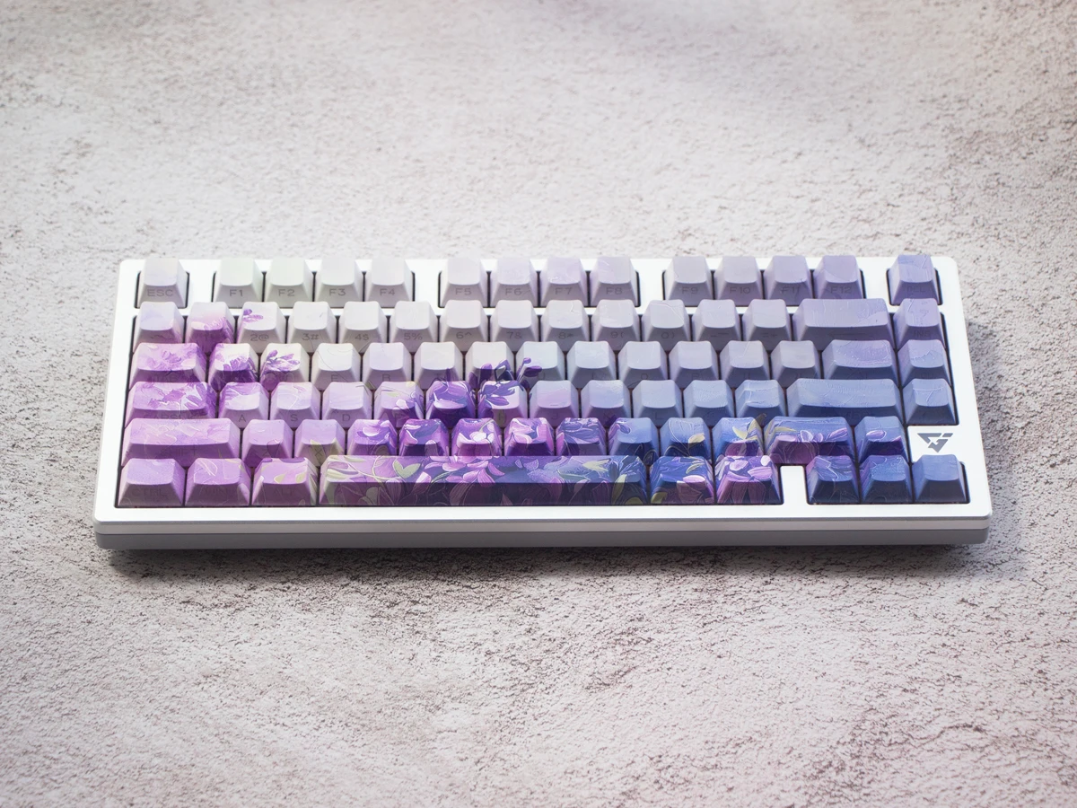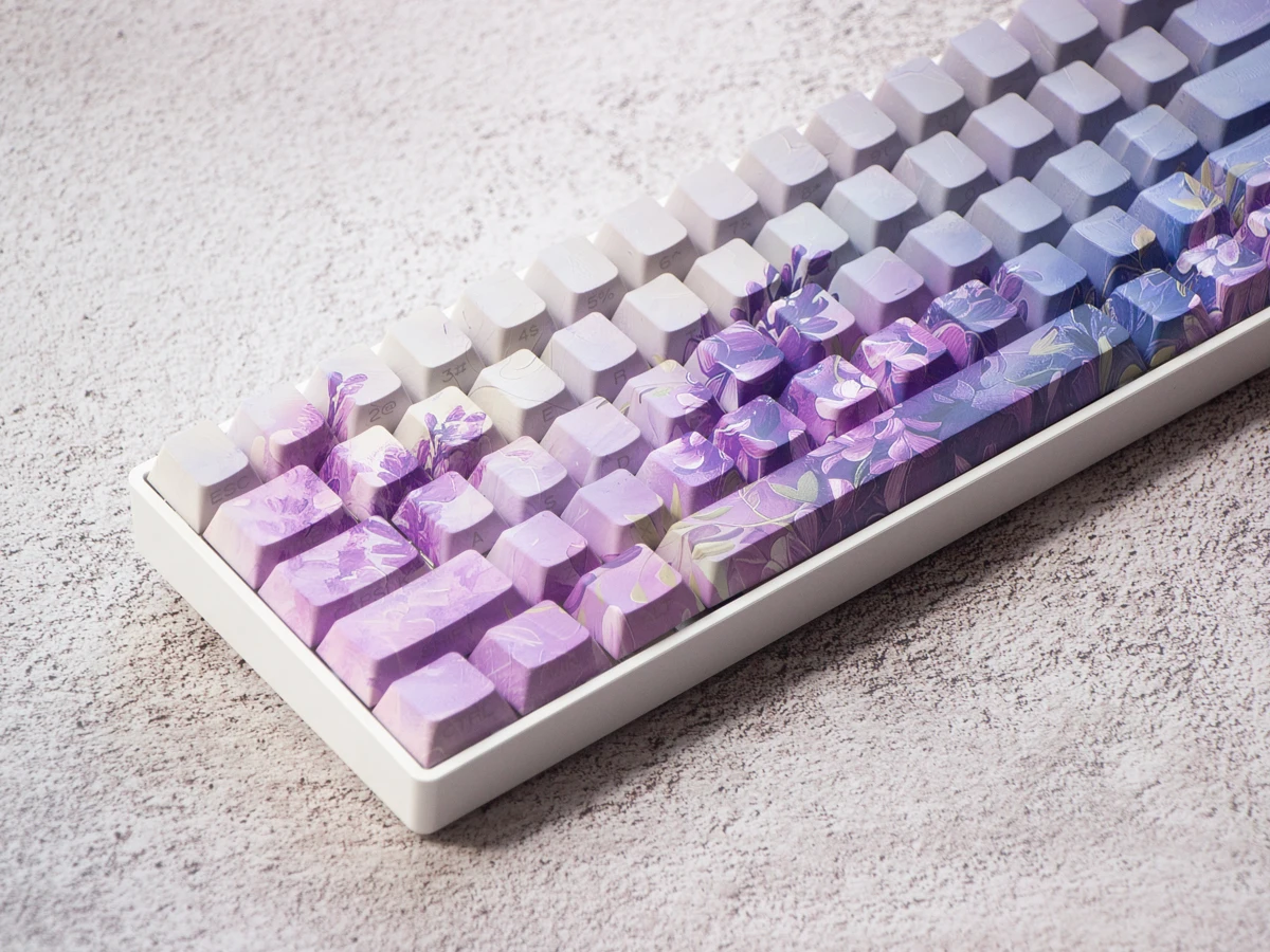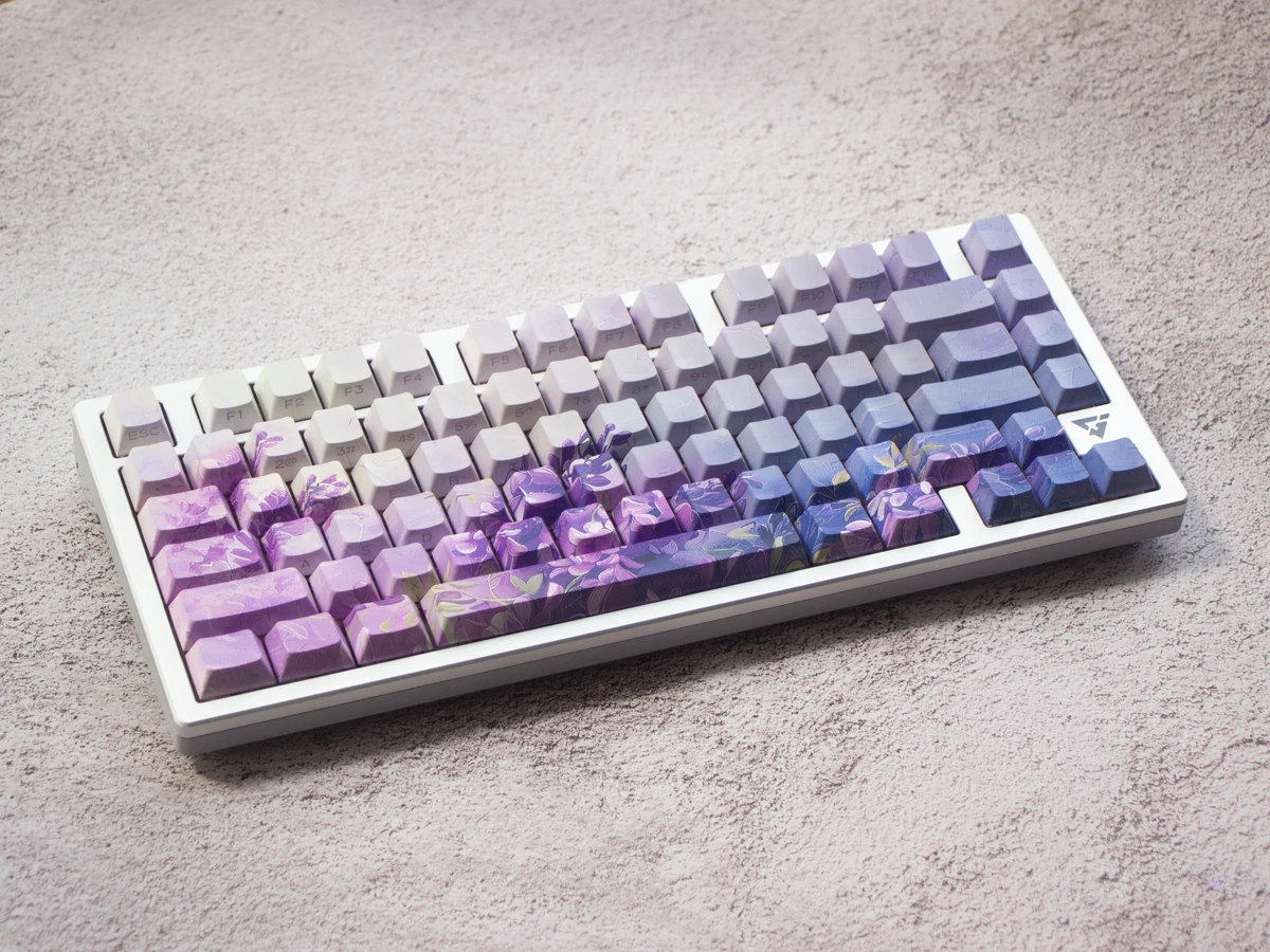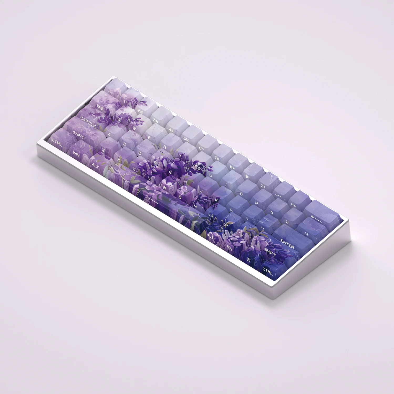 Comprar Teclas de Wisteria Flowers para teclado mecánico, PBT 5, tinte lateral, Sub Perfil de cereza, impresión lateral, retroiluminación púrpura, Ajazz AULA F75