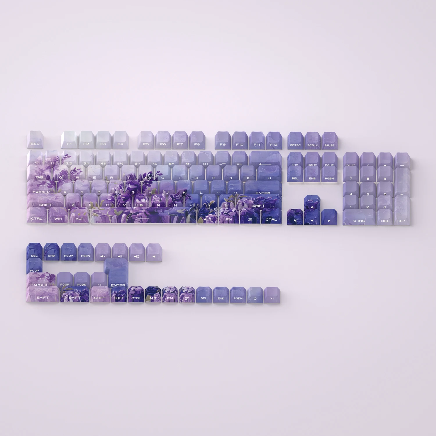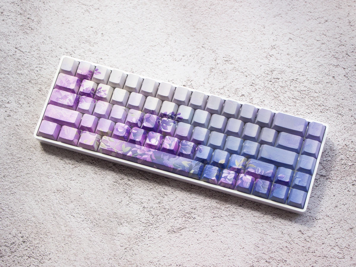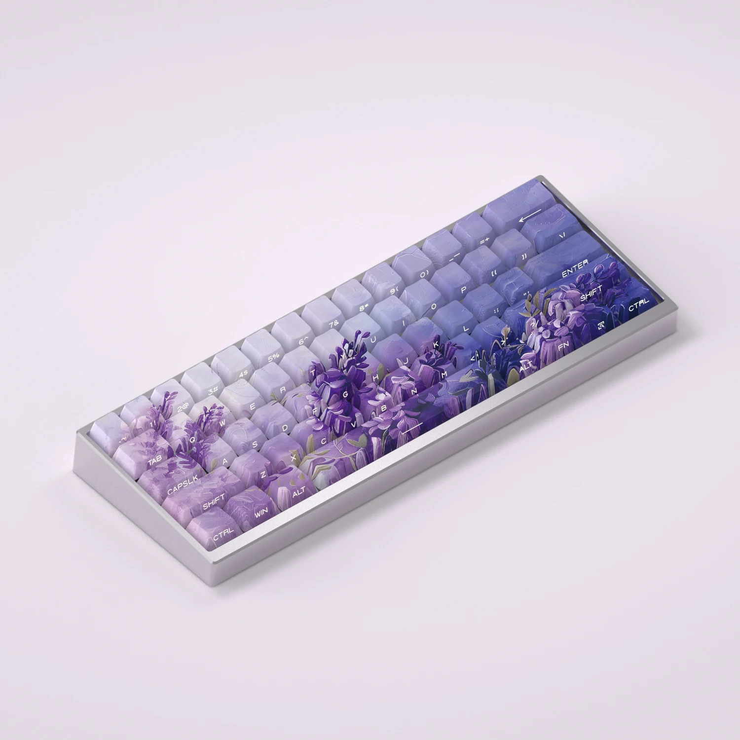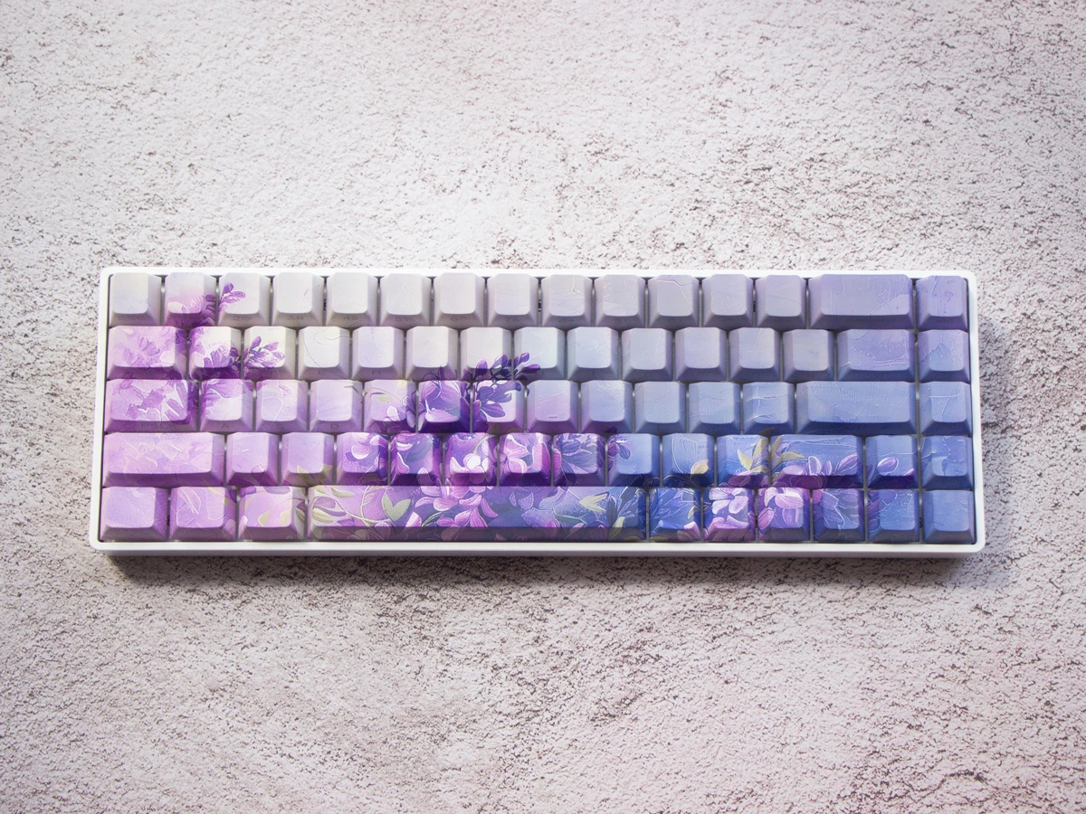 Comprar Teclas de Wisteria Flowers para teclado mecánico, PBT 5, tinte lateral, Sub Perfil de cereza, impresión lateral, retroiluminación púrpura, Ajazz AULA F75