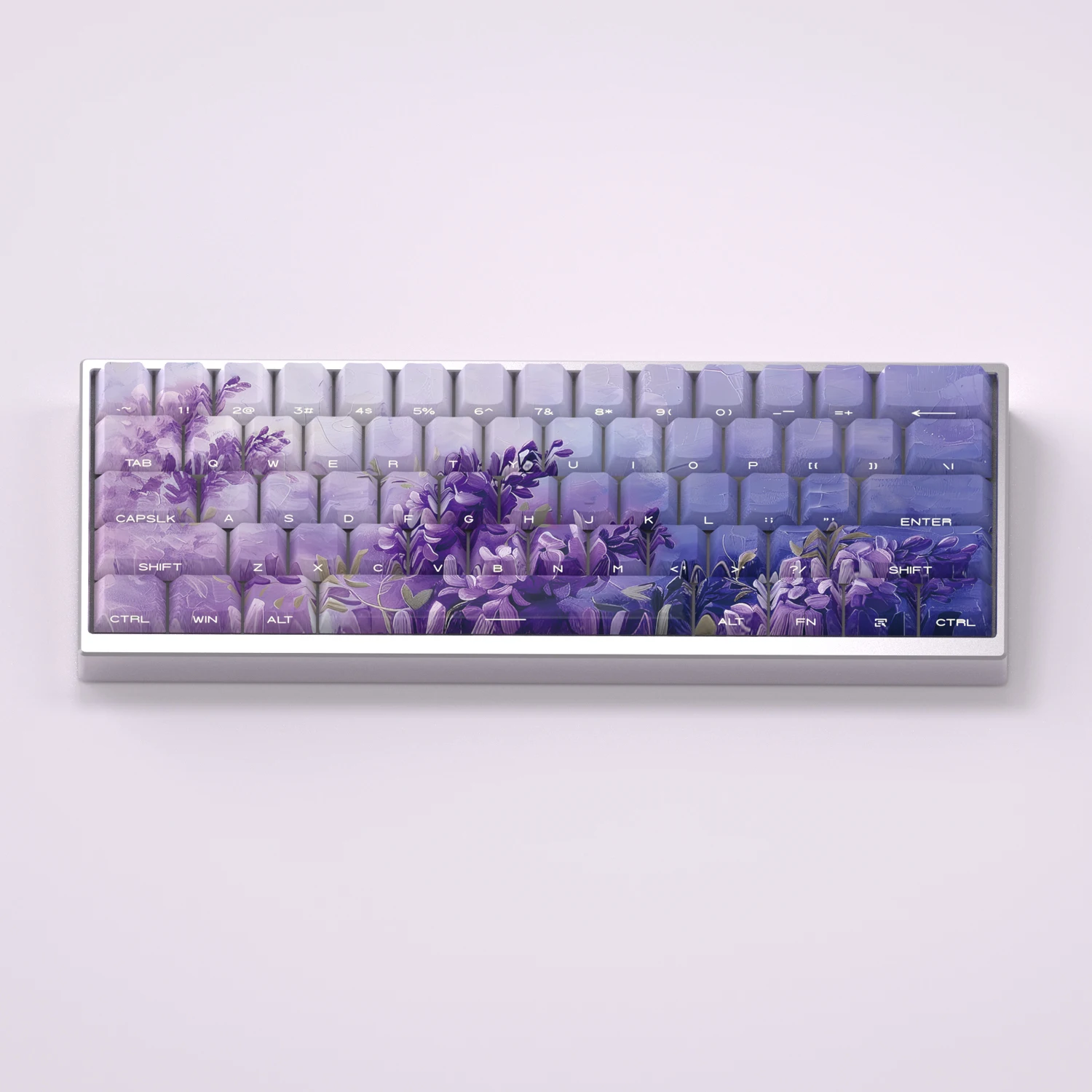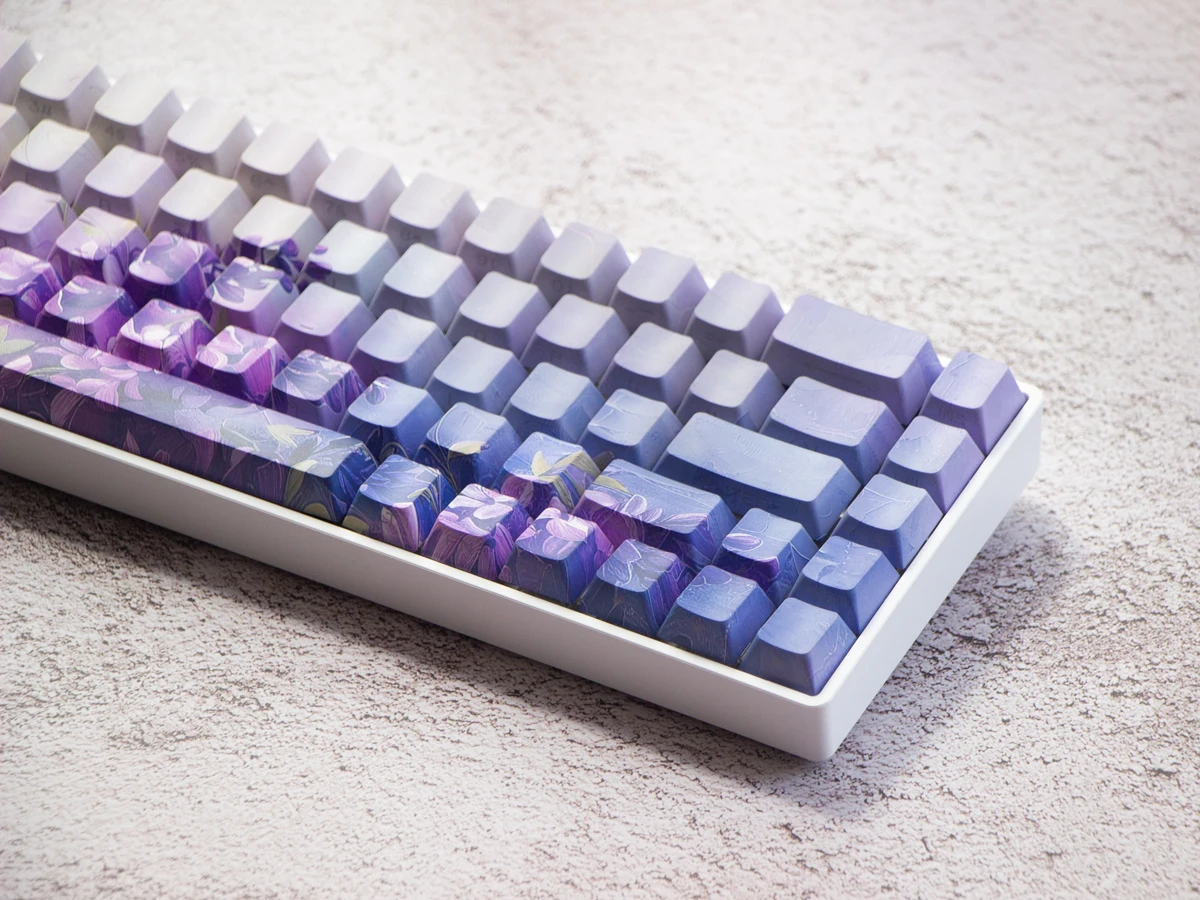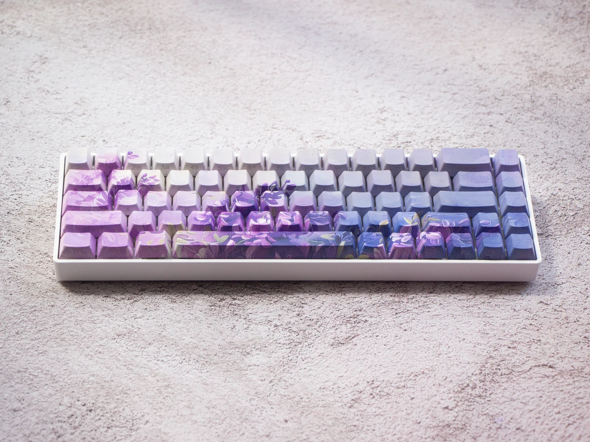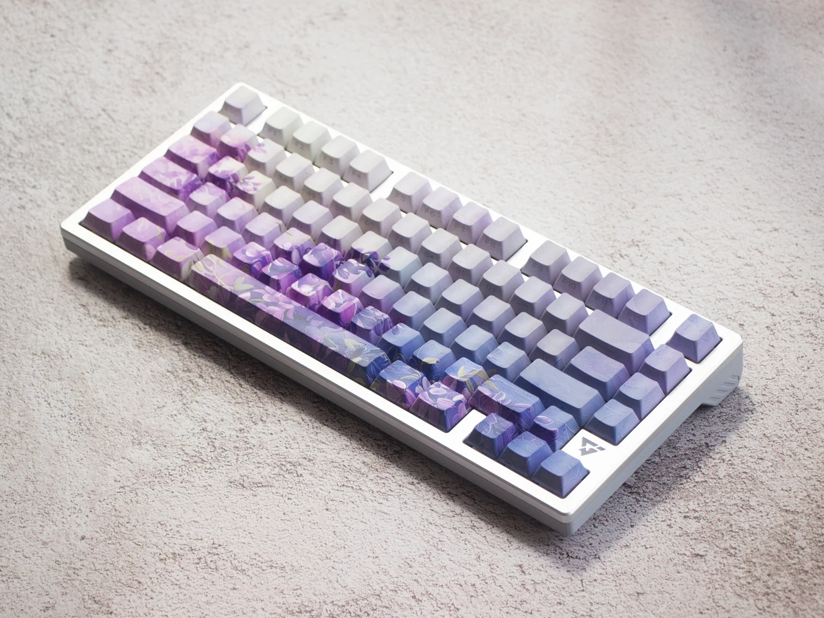 Comprar Teclas de Wisteria Flowers para teclado mecánico, PBT 5, tinte lateral, Sub Perfil de cereza, impresión lateral, retroiluminación púrpura, Ajazz AULA F75