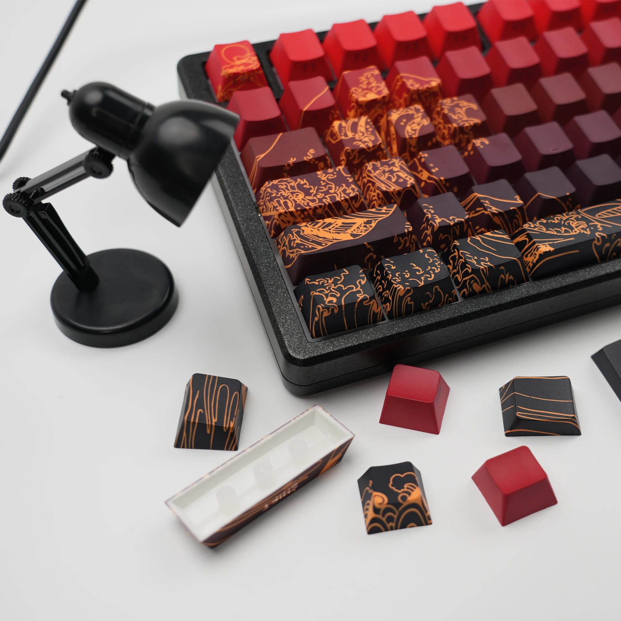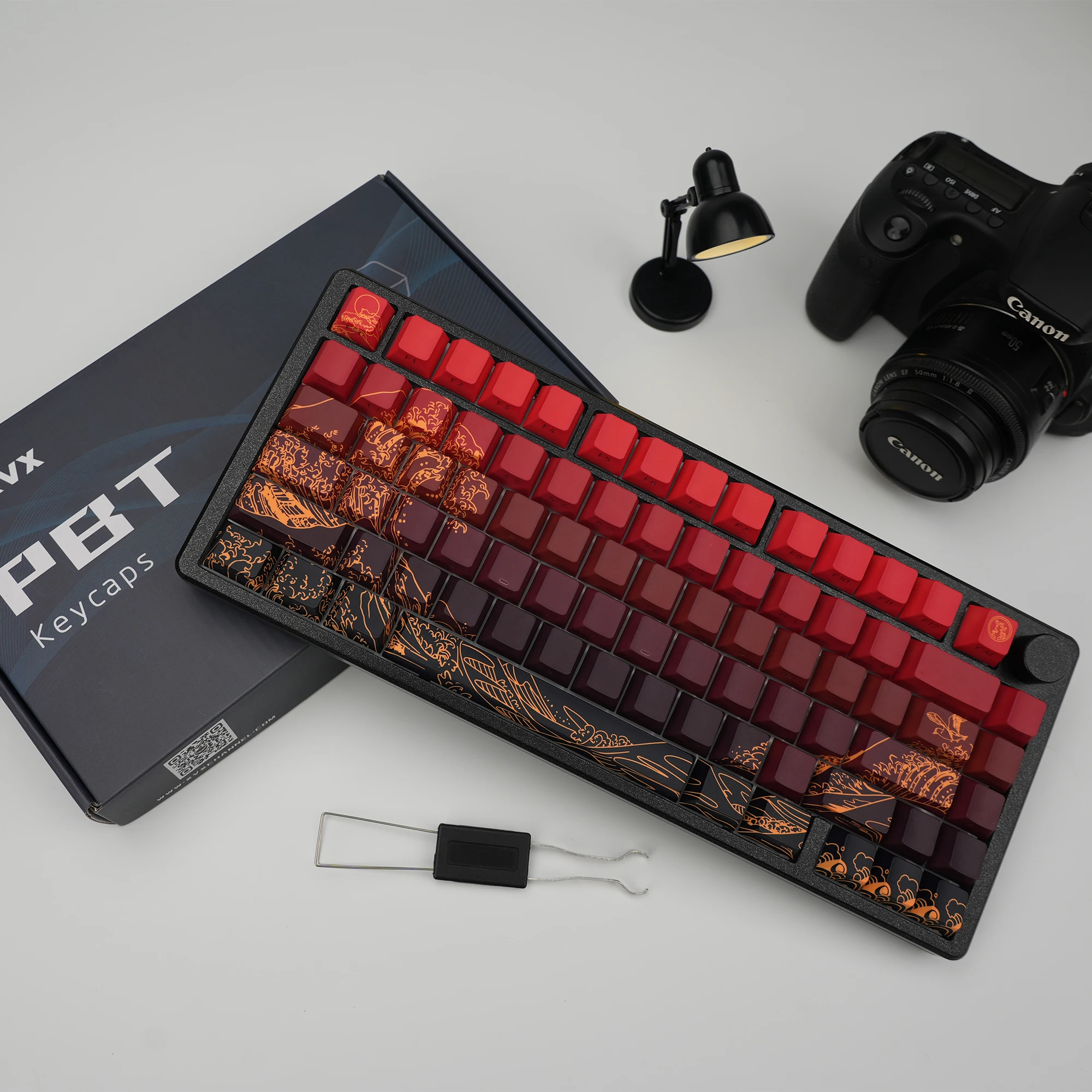 Comprar Teclas XVX de 131 teclas con perfil de cereza de doble disparo, teclas PBT con estampado lateral, teclas de Coral Sea para teclado mecánico que brilla a través