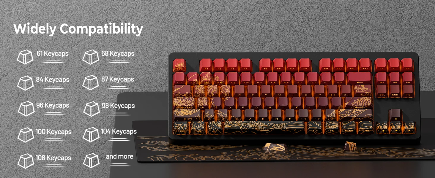 La mayoría de los teclados mecánicos ANSI US con diseño 61/64/68/84/87/96/98/100/104/108 teclas