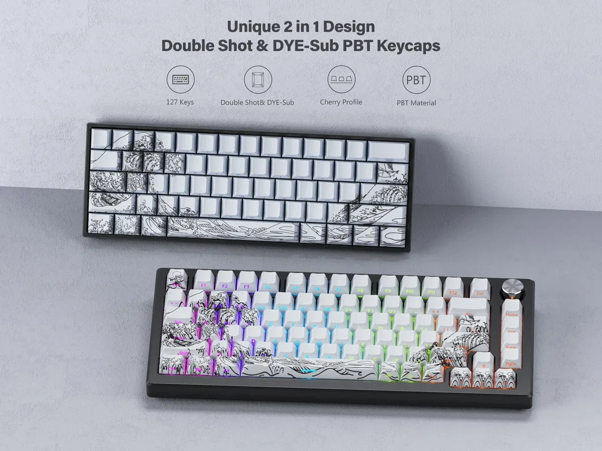 Comprar Teclas XVX de doble disparo, perfil de cereza, impresión lateral, Coral Sea, PBT, teclados mecánicos para juegos de PC, Kit de accesorios, regalos para hombre
