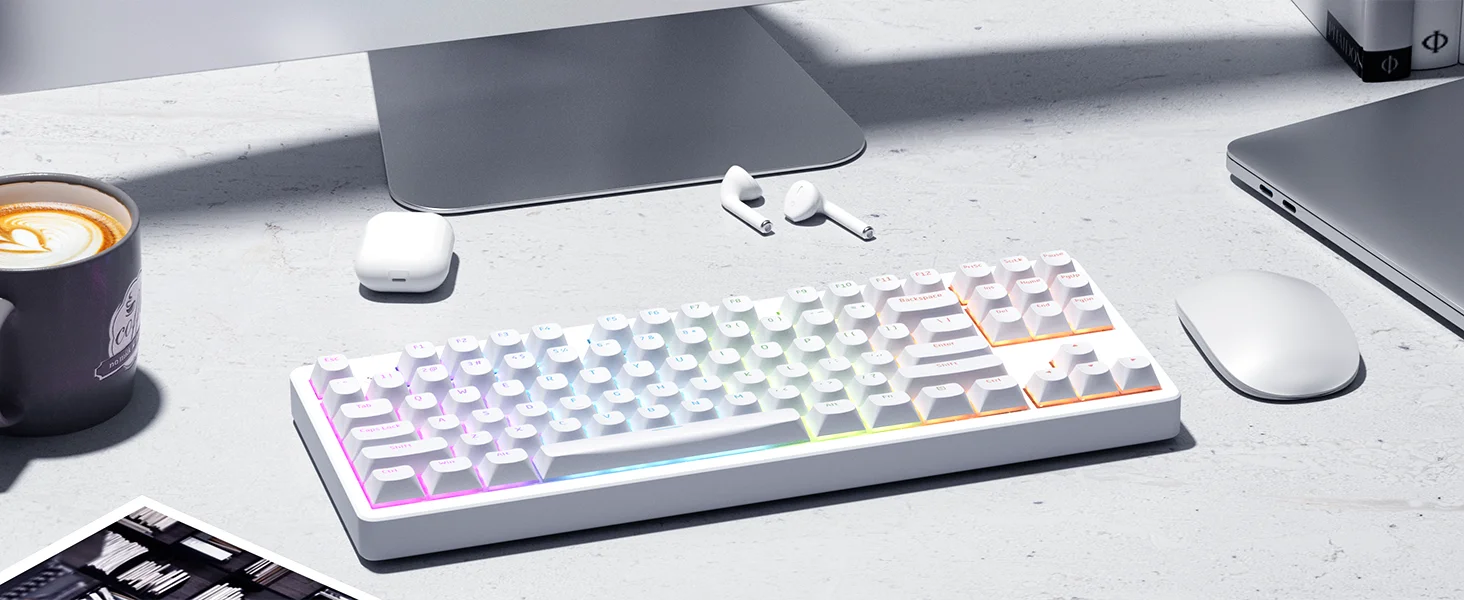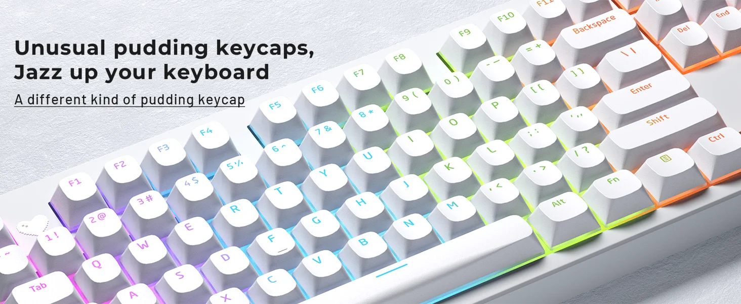 Comprar Teclas XVX Horizon Line Pudding, teclas blancas para teclado mecánico que brillan a través de teclas PBT, juego de 117 teclas