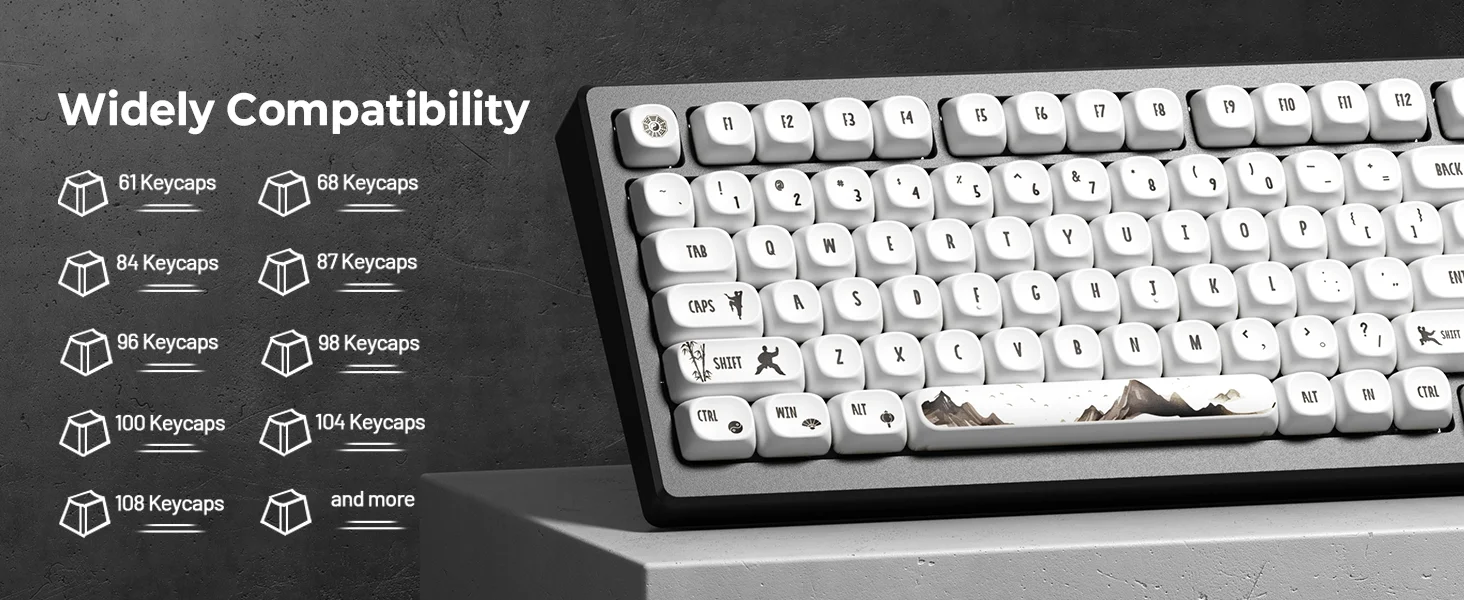 【What You Get】1x137 black and white keycap set (key puller included), our worry-free 18-month warranty, and friendly customer service. It’s only keycaps, no keyboard included.