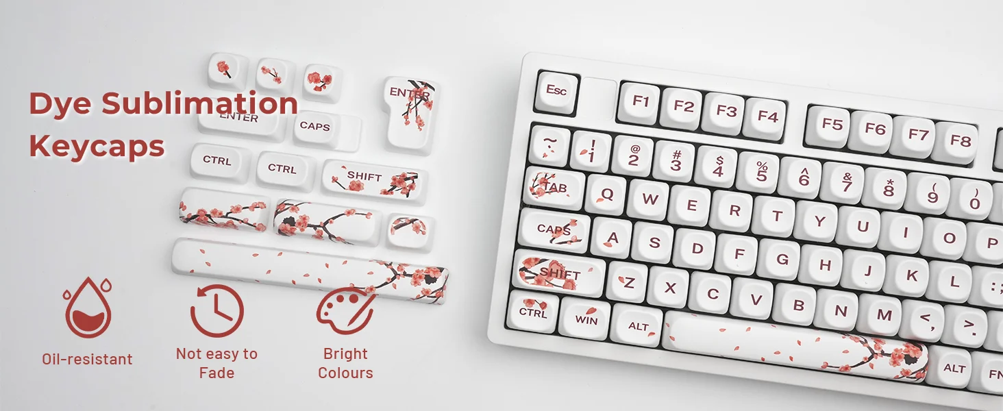 【Dye Sublimation Process】The japanese key caps adopts advanced dye sublimation technology, the color pattern is more vivid, not afraid of oil stains, and has a long service life.