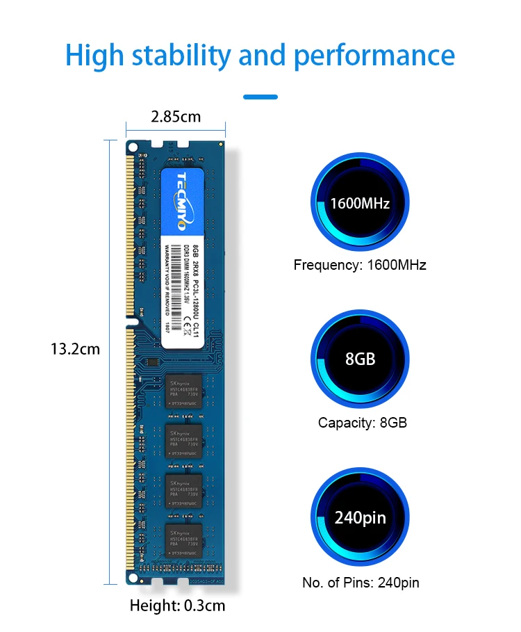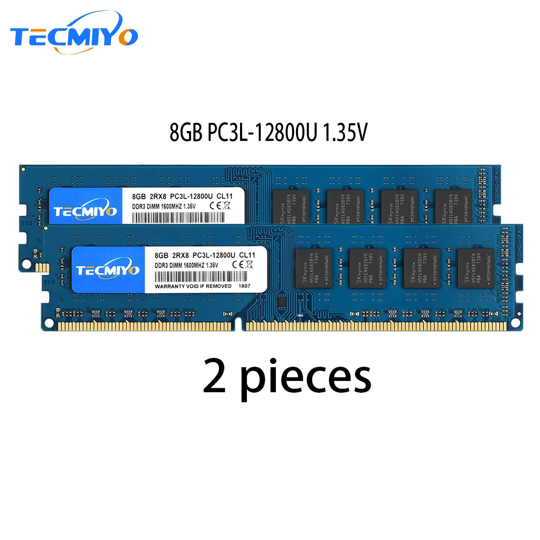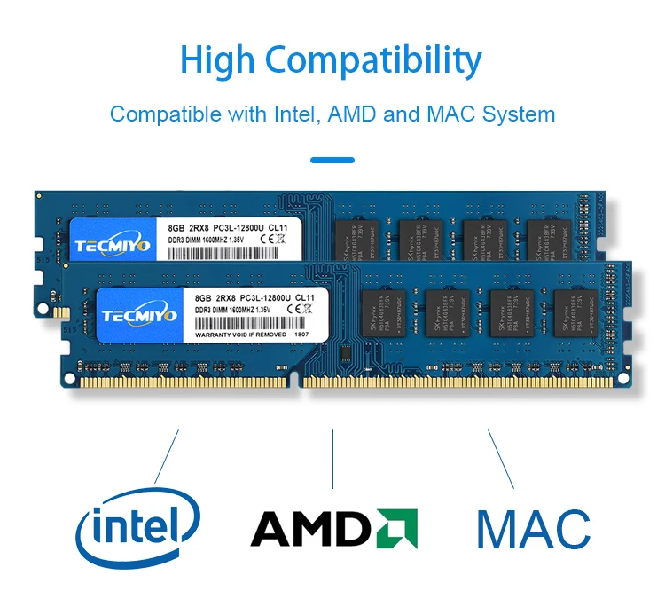Comprar TECMIYO RAM de escritorio 2X 8GB DDR3L 1600MHz DIMM PC3L-12800U 1.35V 2RX8 240pin Memoria DDR3 Intel AMD de bajo voltaje para computadora -Azul