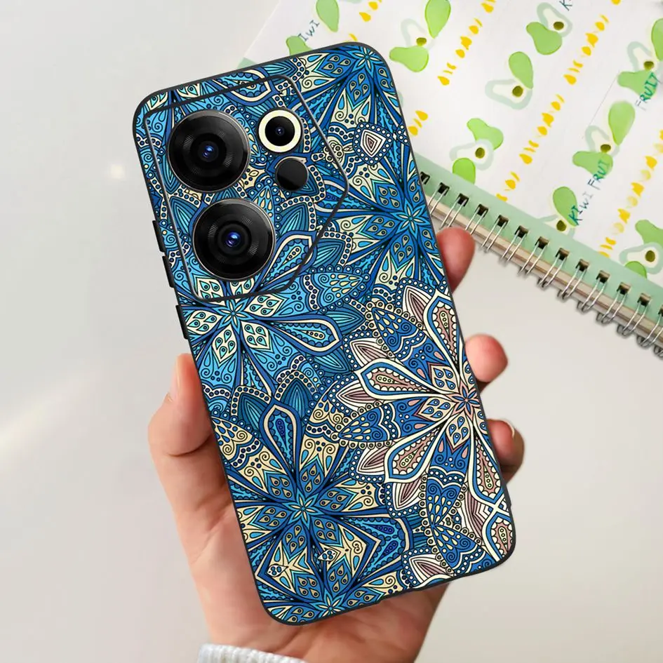 For Tecno Camon 20 Premier Case CK9n Cover 2023 Fashion Flower Protective Shell Soft Black Bumper For Tecno Camon20 Premier Etui