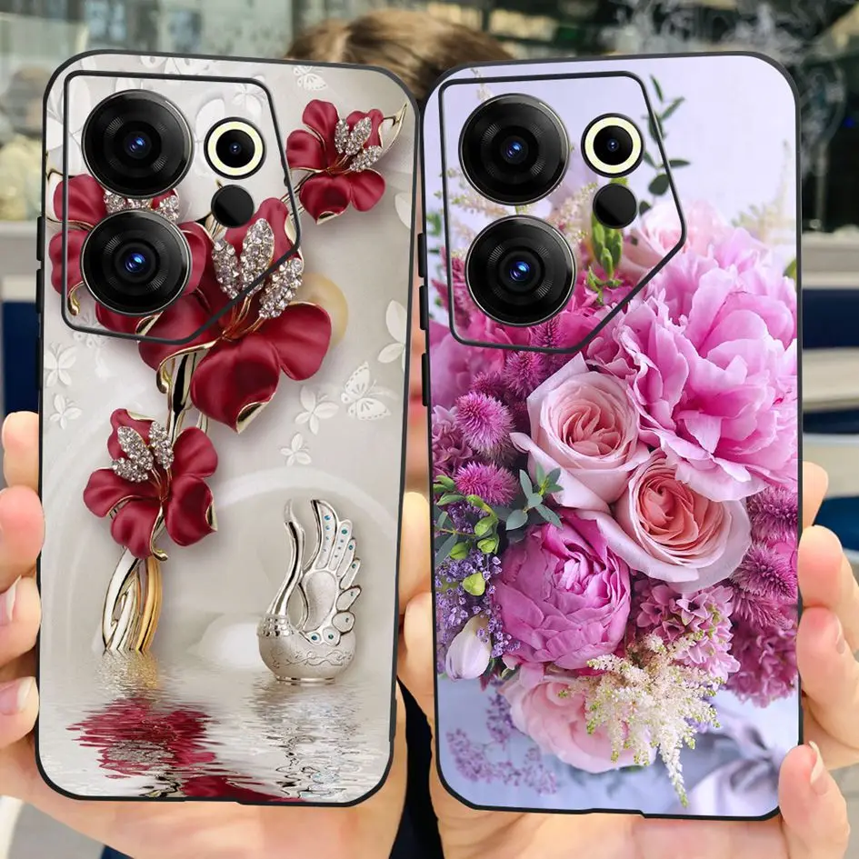For Tecno Camon 20 Premier Case CK9n Cover 2023 Fashion Flower Protective Shell Soft Black Bumper For Tecno Camon20 Premier Etui