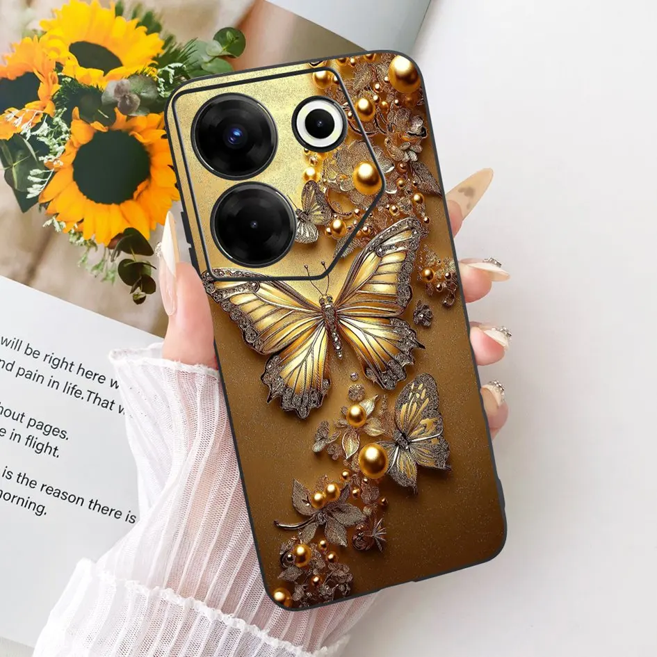 Detalle de productosPara Tecno Camon 20 Pro funda CK7n moda flor mariposa suave negro silicona TPU funda para Tecno Camon 20 Premier Camon20 carcasa