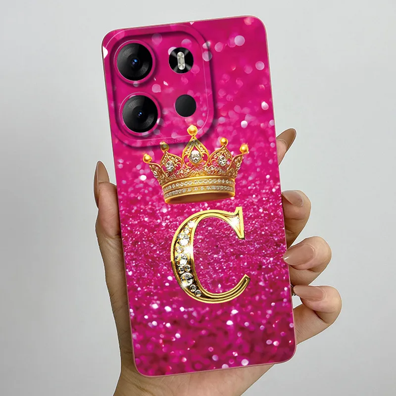 Comprar Para Tecno Pop 7 Pro Pop7 BF6 BF7 funda de teléfono corona letra contraportada suave Fundas de silicona líquida para Tecno Spark GO 2023 parachoques
