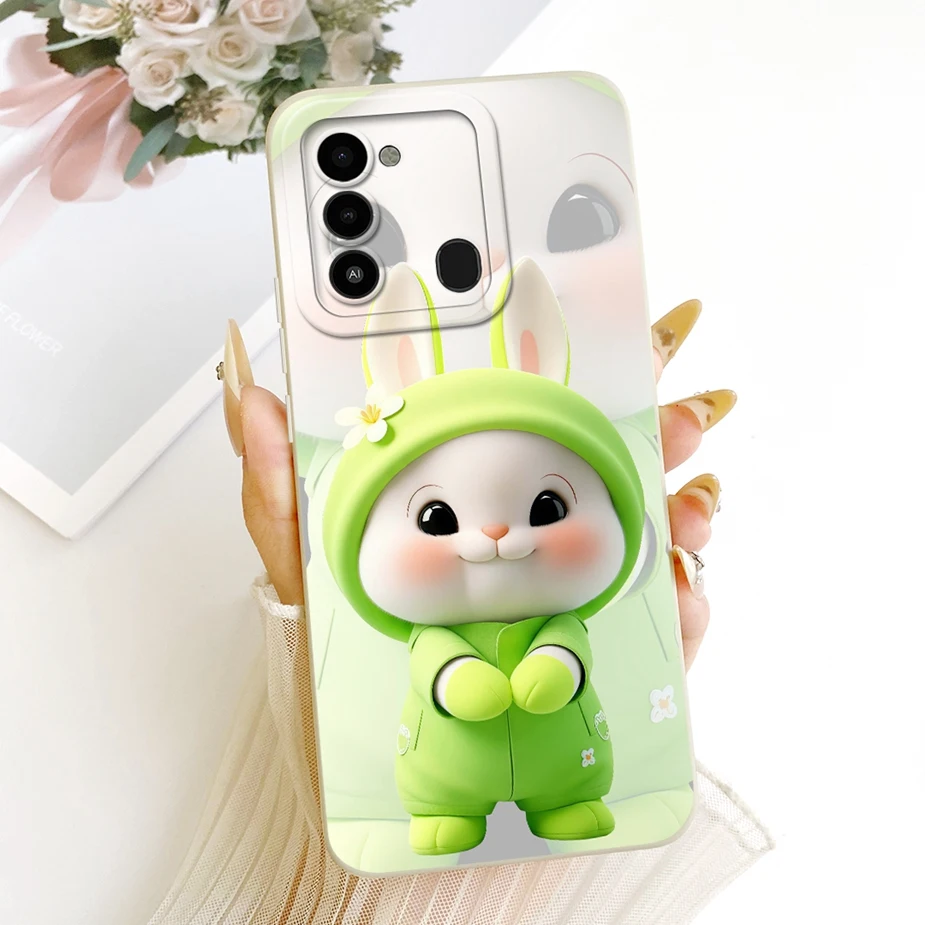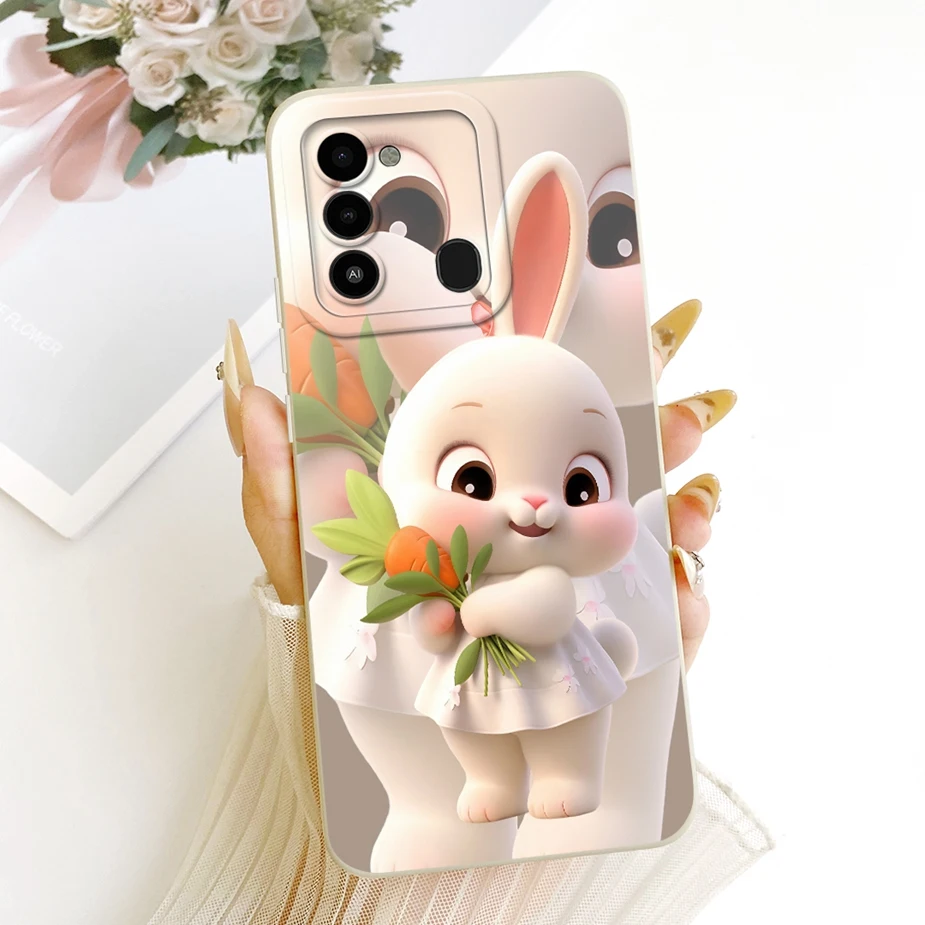 Para Tecno Spark Go 2022, funda KG5 KG5h, funda bonita de dibujos animados de conejo, funda de teléfono a prueba de golpes para Tecno Spark 8C Spark8C, funda suave, bolsas