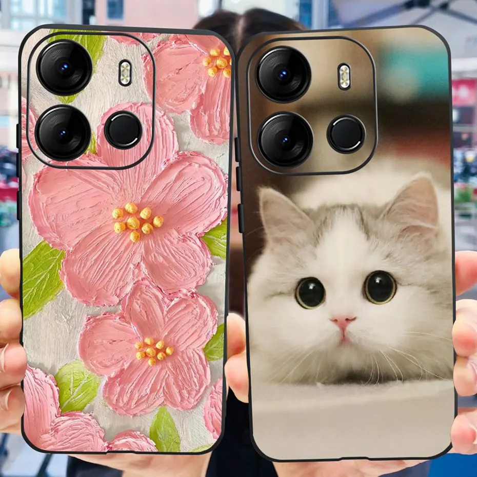 Comprar Para Tecno Spark Go 2023 funda Linda flor gato pintado suave silicona TPU Bkac cubierta para Tecno Spark Go (2023) BF7n parachoques