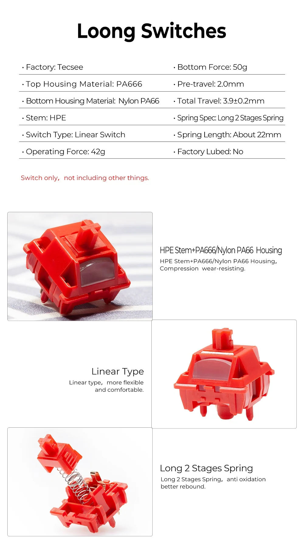 Comprar Tecsee-interruptor lineal Loong para teclado mecánico, conmutador MX Stem para juegos, PA666, nailon, PA66, HPE, resorte largo, 42g, 50g