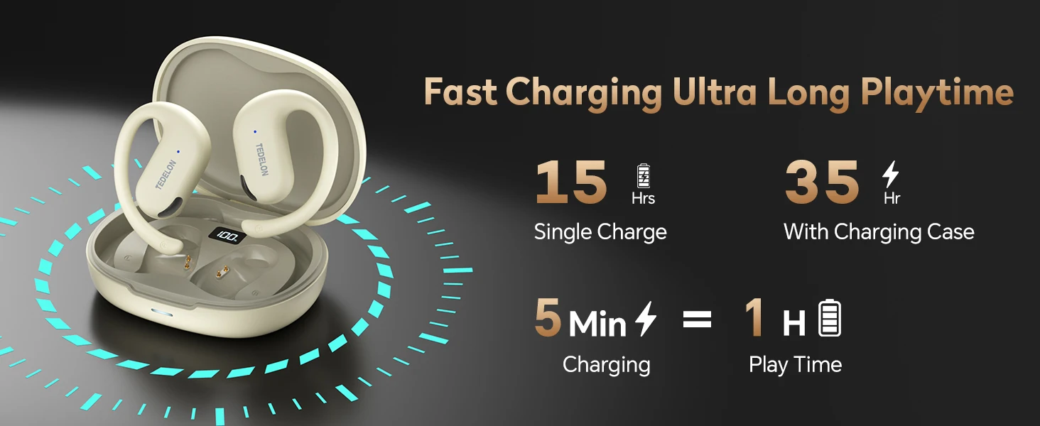 【Fortaleza de la batería】 Resuelva la ansiedad de su duración de la batería y ofrezca 50 horas de duración de la batería.La pantalla LED de la batería muestra el porcentaje de batería en tiempo real (con una precisión del 1%) y el estado de carga.Nuestra gestión inteligente de energía extiende la vida útil a más de 800 ciclos.La carga rápida: 10 minutos de carga proporcionan 3 horas de uso.Diseñado específicamente para corredores de ultramarones y viajeros internacionales.