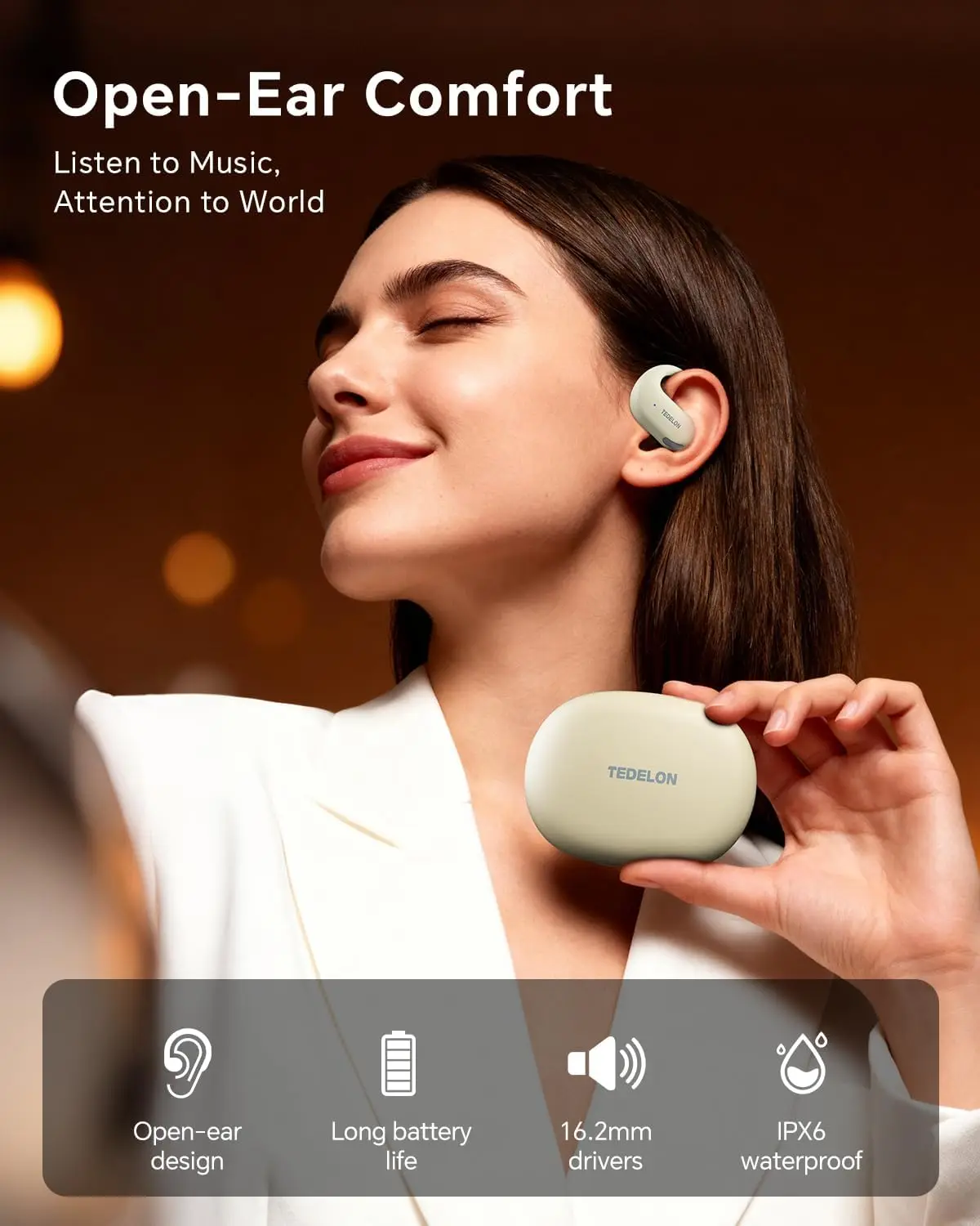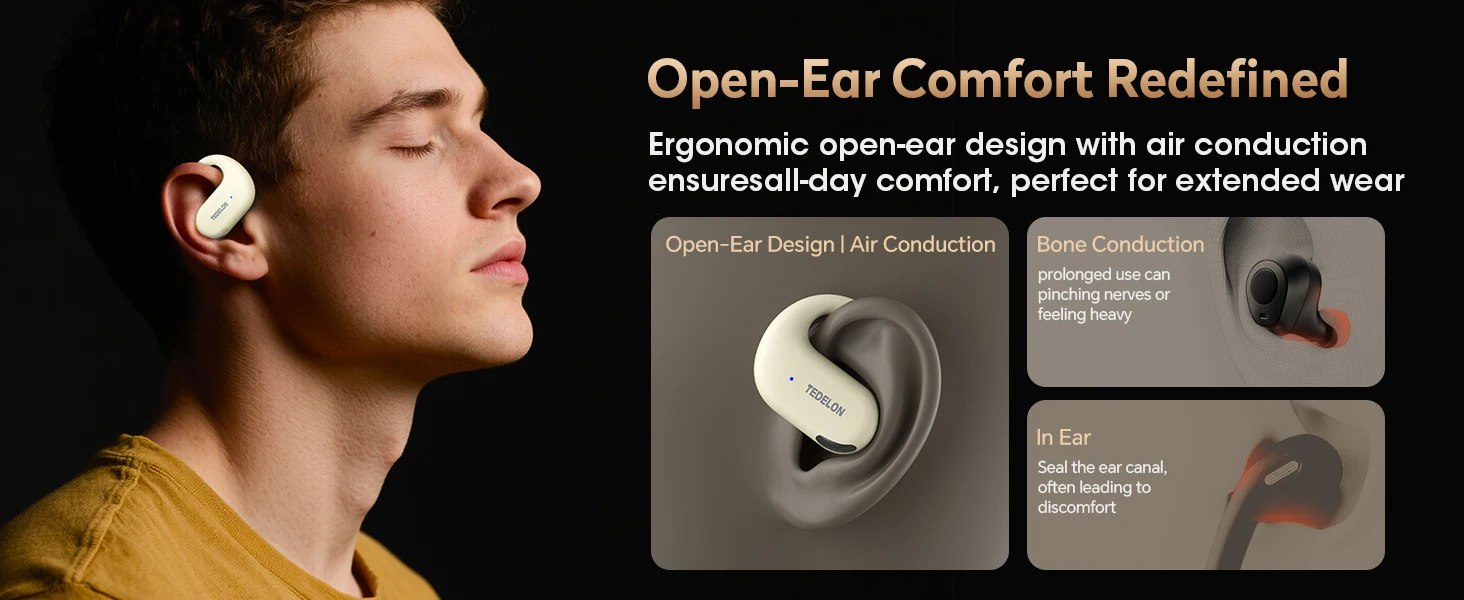 1.Auriculares inalámbricos con diseño de oído abierto