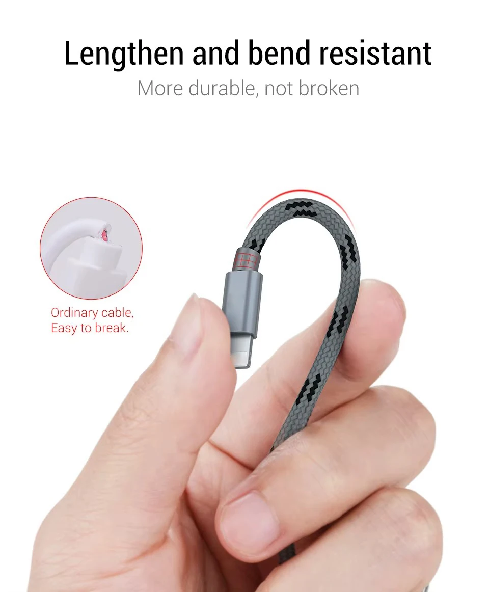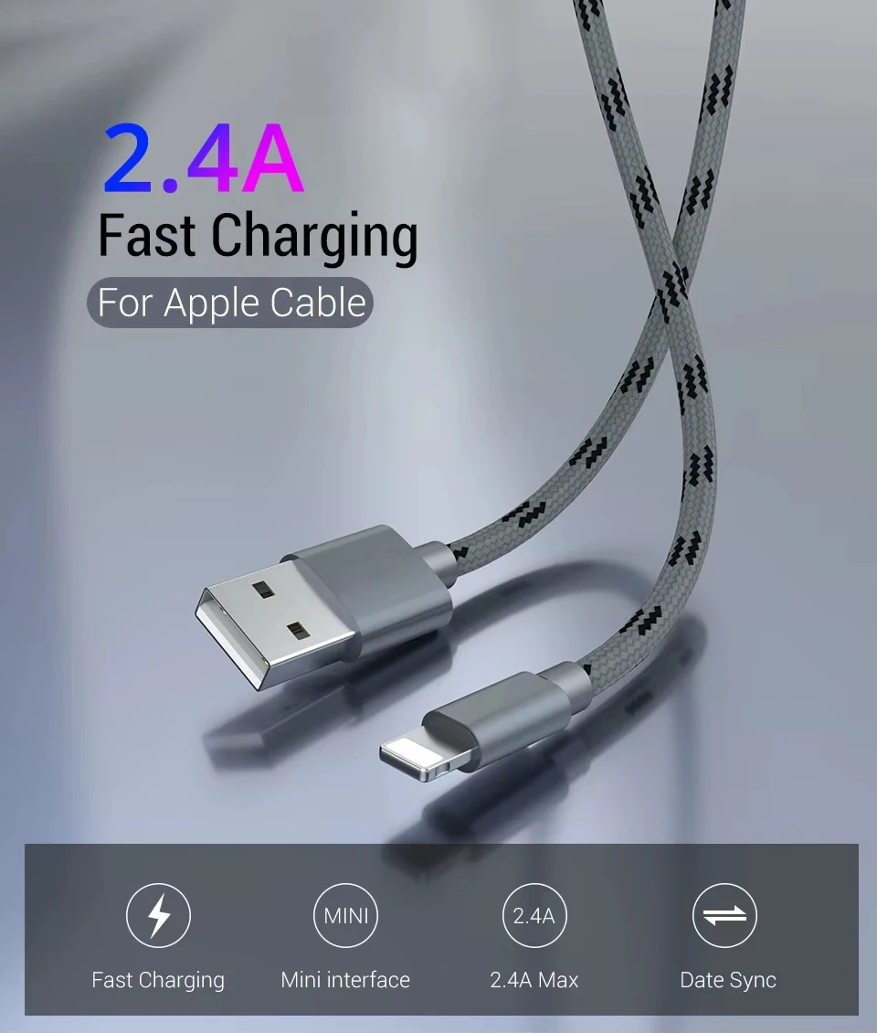 Tela trenzada 25cm 1M 2M 3M Cable USB de datos de carga rápida para iPhone 14 13 12 mini 11 Pro XS Max X XR 7 8 Plus SE iPAD 9