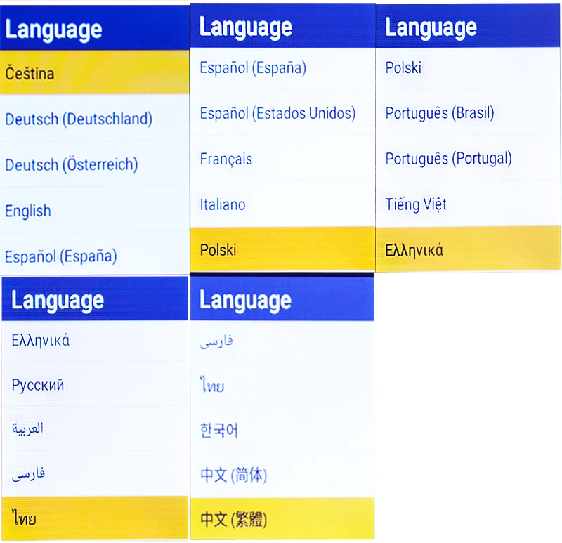 Coreano, persa, Myanmar, tailandés, vietnamita