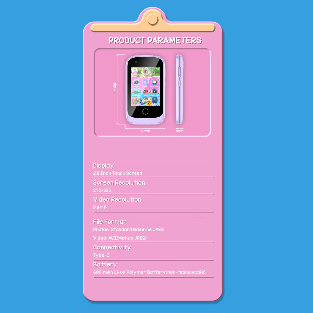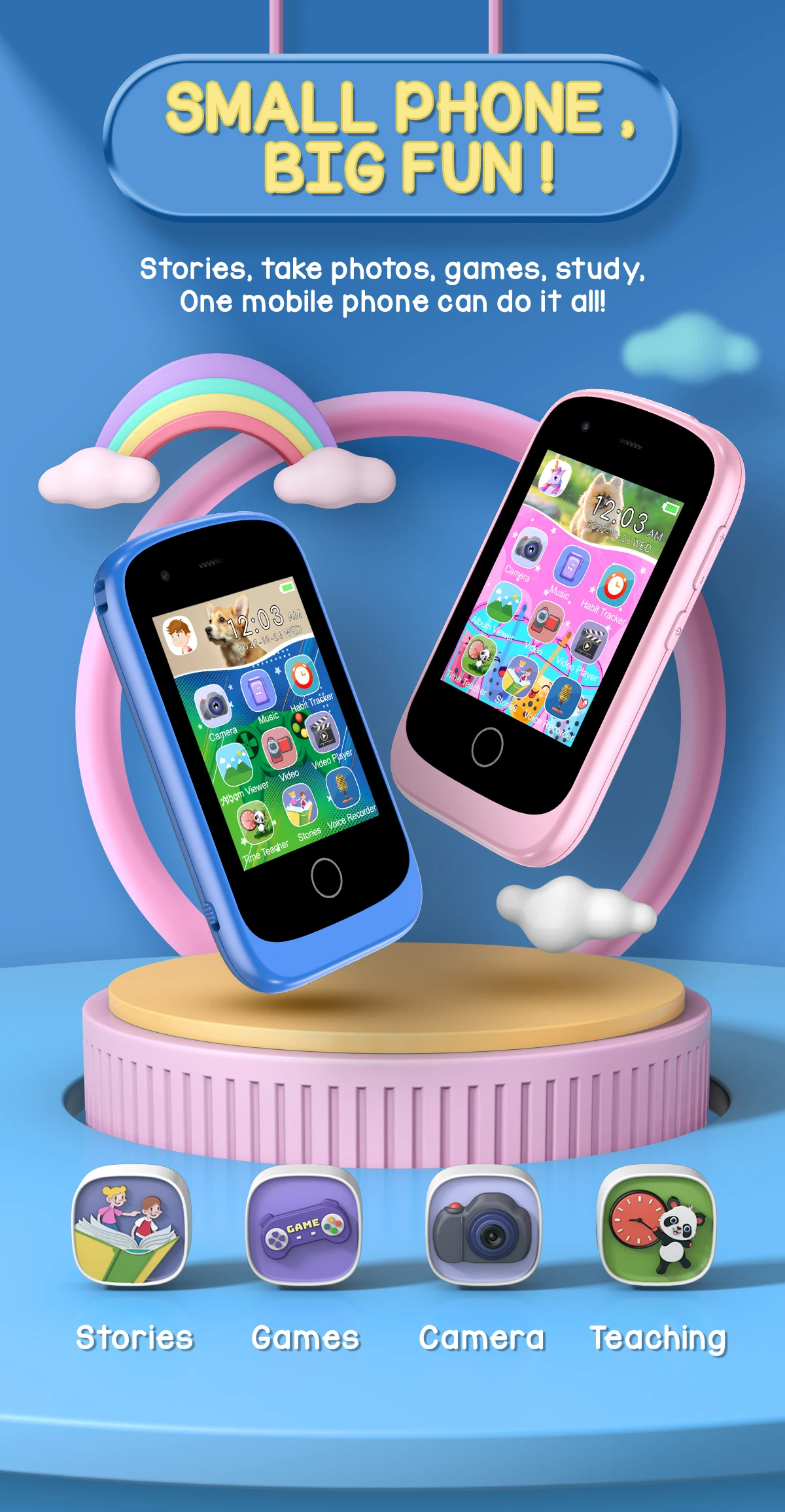 Comprar Teléfono inteligente para niños, cámara con pantalla táctil, juguetes de aprendizaje para niños de 3 a 12 años, reproductor de MP3, regalos de cumpleaños y Navidad