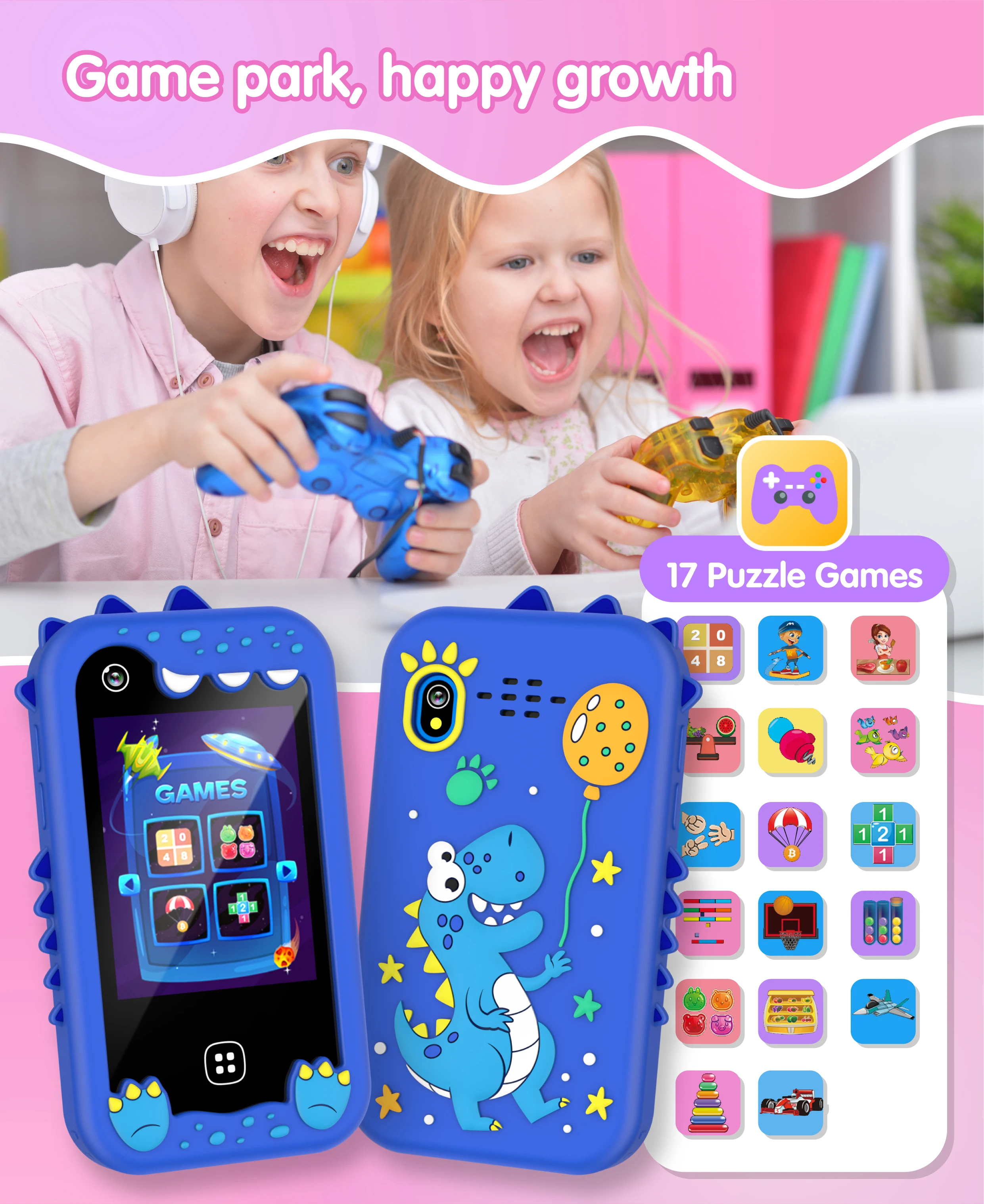 Comprar Teléfono inteligente para niños y niñas, juguetes para teléfono móvil con cámara Dual, reproductor de música, 17 juegos, teléfono de aprendizaje para niños pequeños, regalos de cumpleaños