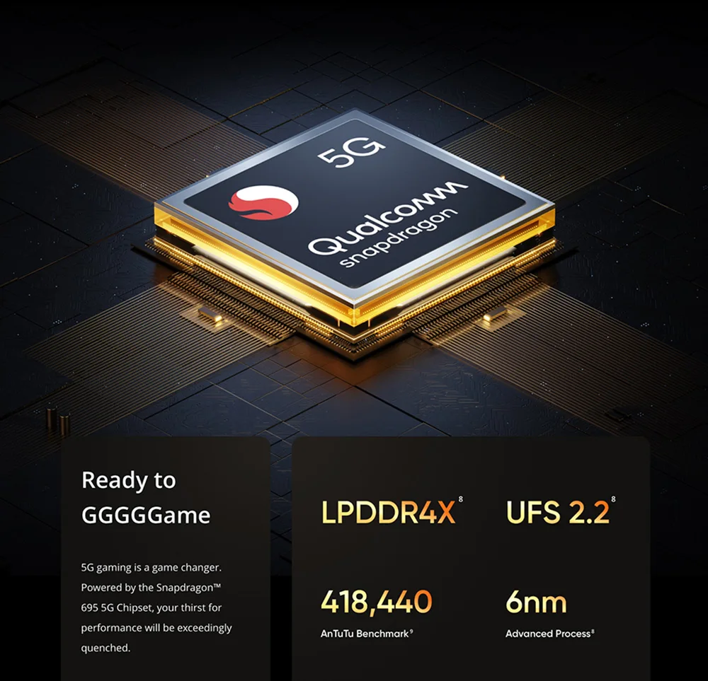 CPU -------------Snapdragon 695 Octa Core 6nm; GPU: Kryo Silver 1,8 GHz X6