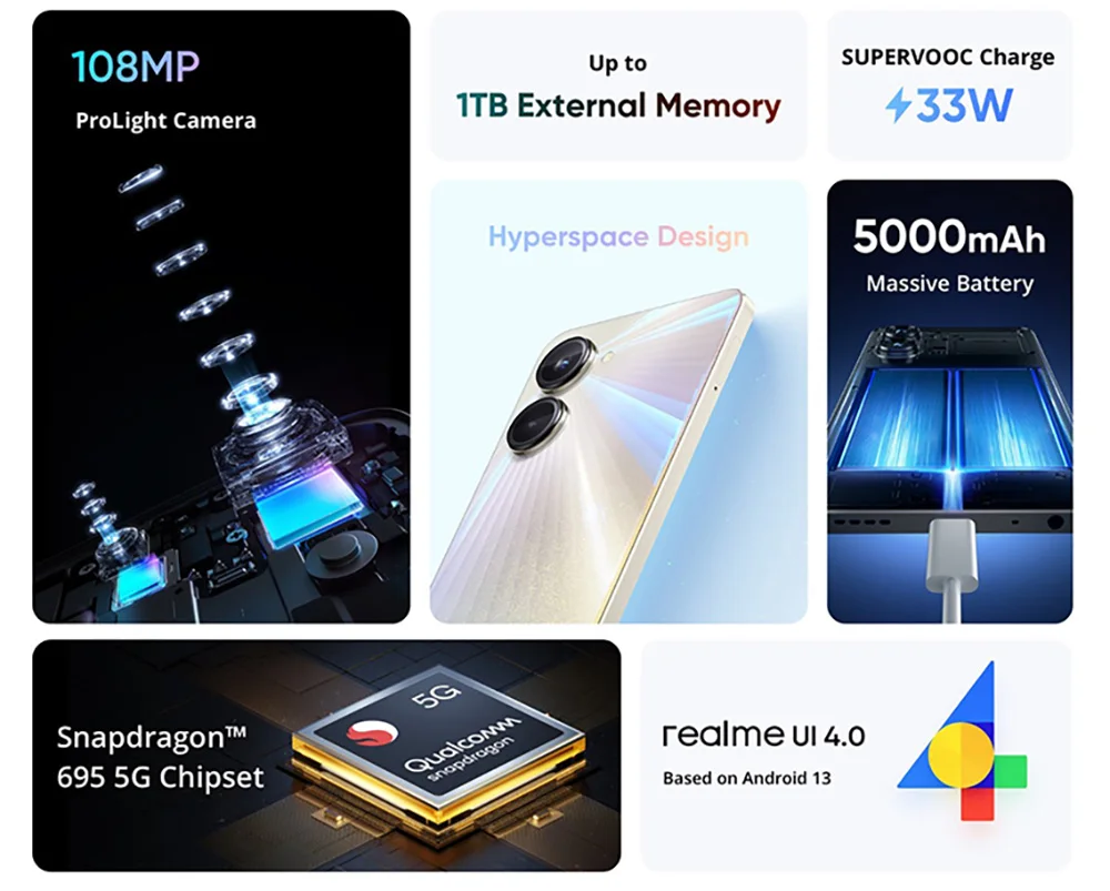 Comprar Teléfono Inteligente realme 10 Pro 5G, Rom Global, pantalla inalámbrica de 6,72 pulgadas, 120Hz, Snapdragon 695, cámara de 108MP, carga SUPERVOOC de 33W, sin NFC