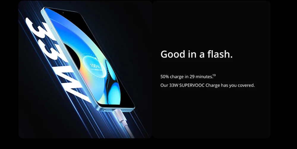 Batería masiva de 5000mAh I 33W SUPERVOOC Charge I Hyperspace Design