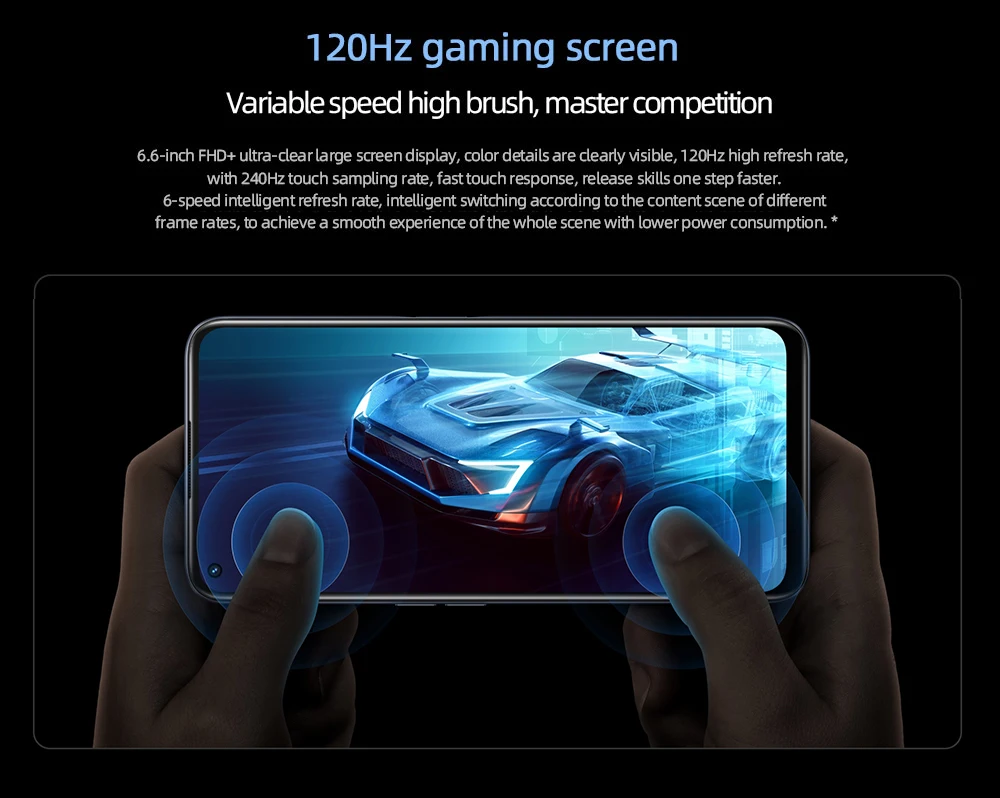 Tamaño de la pantalla: 6,6 pulgadas; Resolución: FHD + (2412 * P 1080); Pantalla de 120Hz