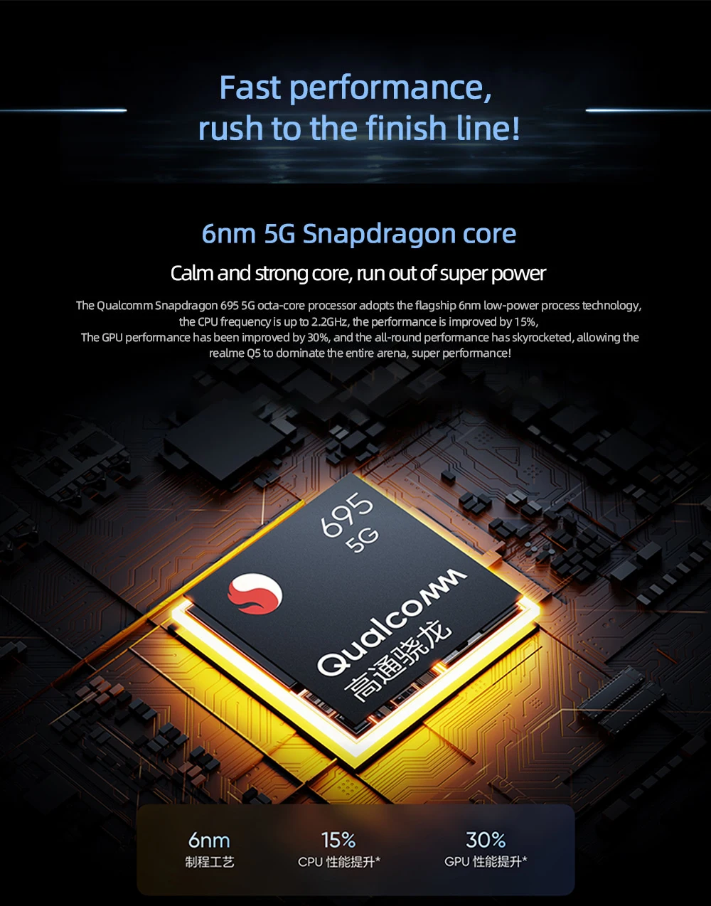 CPU:Snapdragon 695 Octa Core 6nm; GPU: Adreno 619