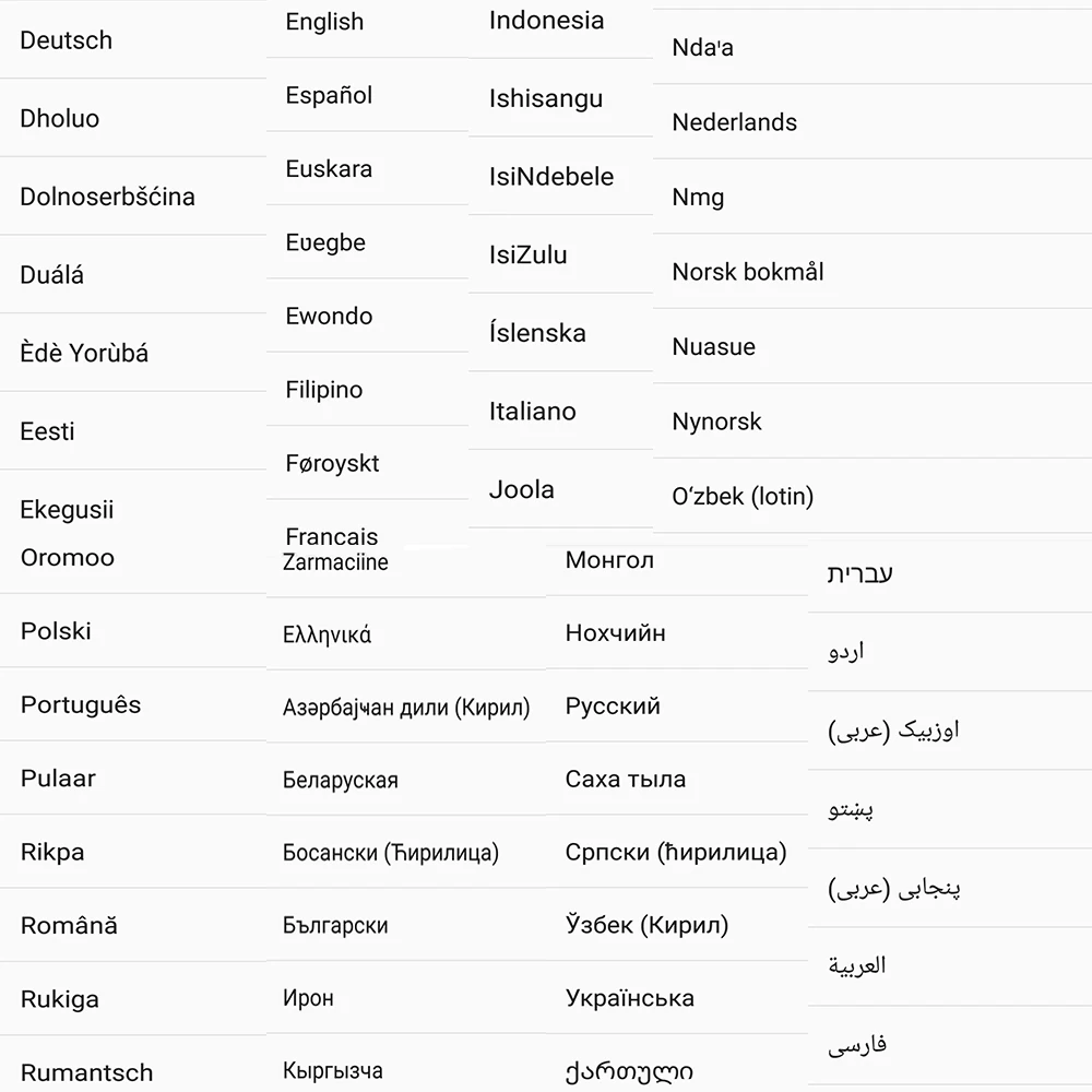 Idiomas: inglés, ruso, español, francés, alemán, italiano, portugués, árabe, turco, etc.