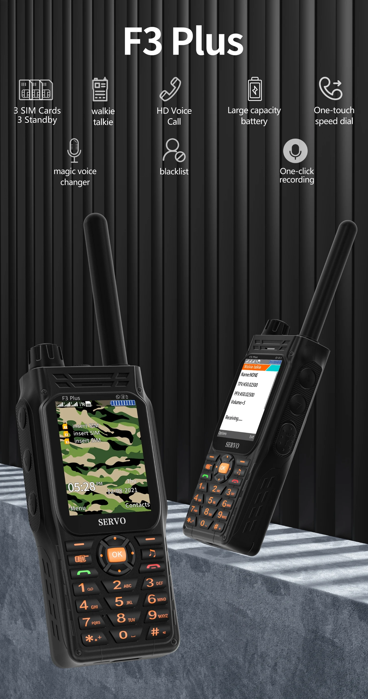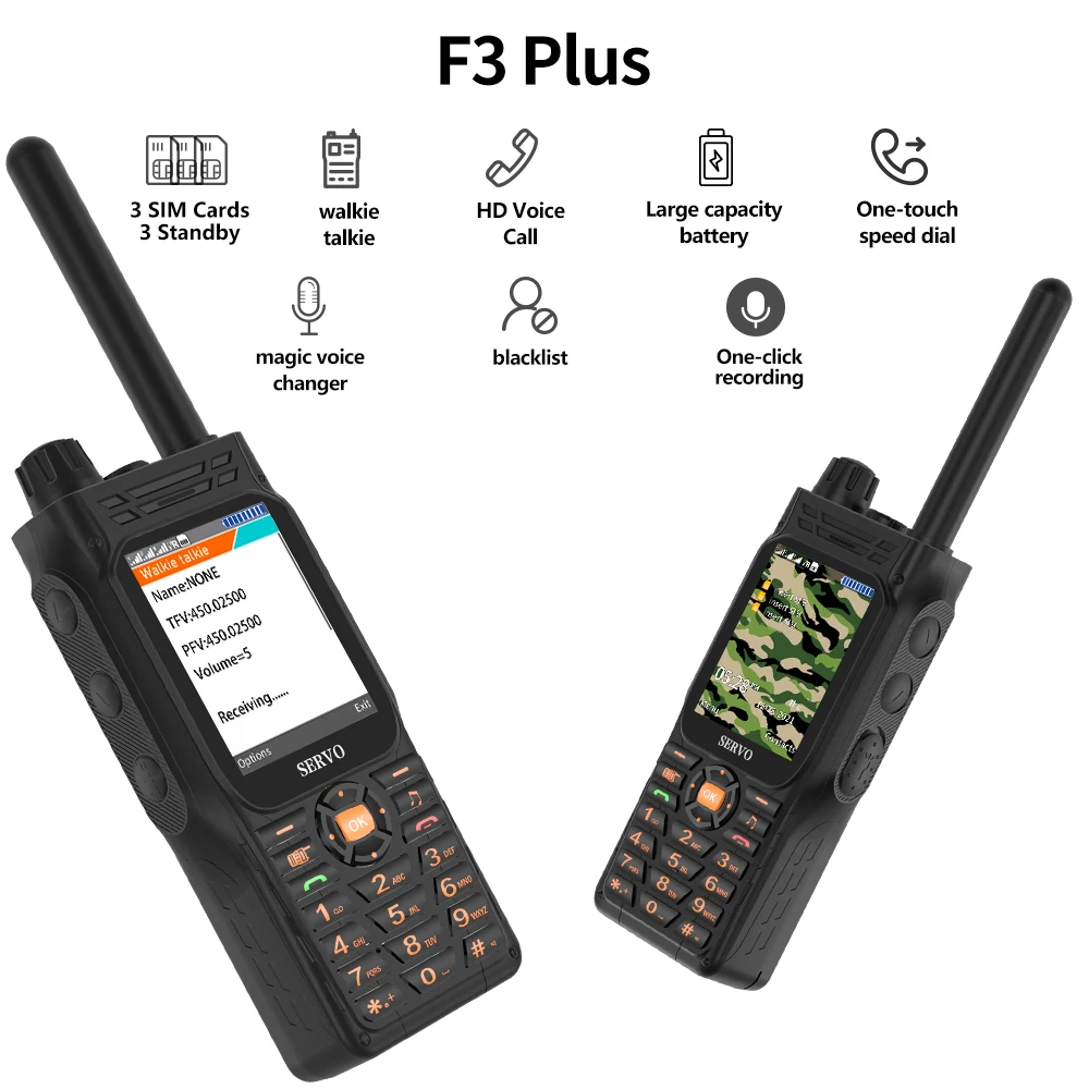 Comprar Teléfono Móvil SERVO F3 Plus 3, walkie-talkie con tarjeta SIM, UHF, 400-470MHz, Banco de energía, Dial de velocidad, grabación automática, llamada, Voz Mágica