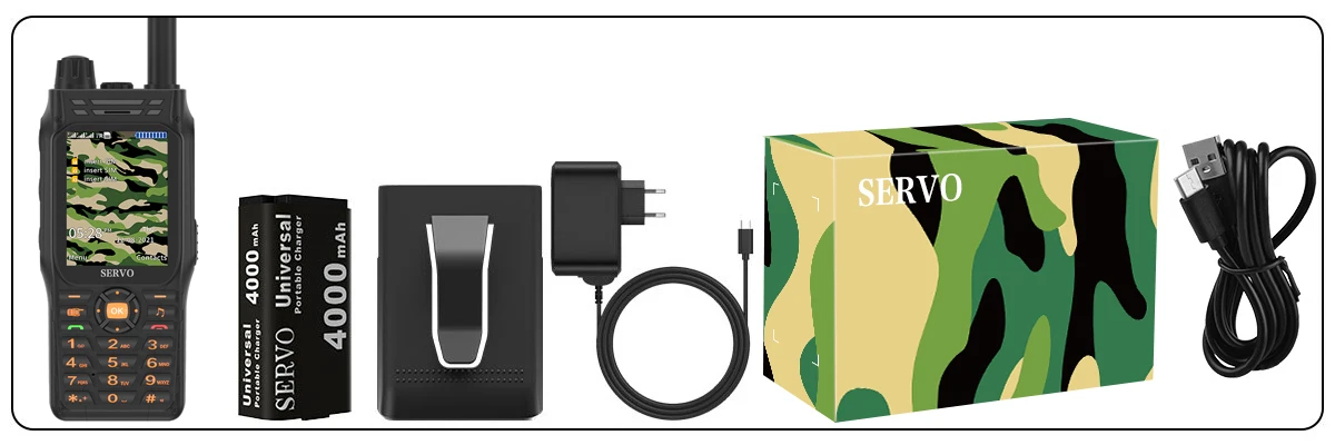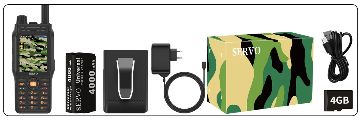 1 * Teléfono, 1 * Estuche con clip para cinturón, 1 * Batería, 1 * Cable USB, 1 * Cable USB, 1 * ,1 * Tarjeta de memoria de 4GB
