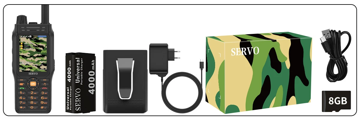 1 * Teléfono, 1 * Estuche con clip para cinturón, 1 * Batería, 1 * Cable USB, 1 * Cable USB, 1 * ,1 * Tarjeta de memoria de 8GB