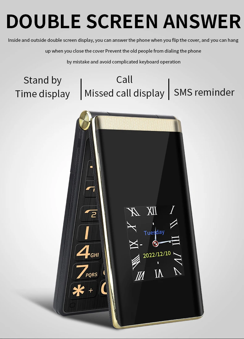 Comprar Teléfono móvil con tapa, celular desbloqueado, dial de velocidad, SOS, radio, botón superior, barato, Clamshell, Envío Gratis, nuevo, 2023