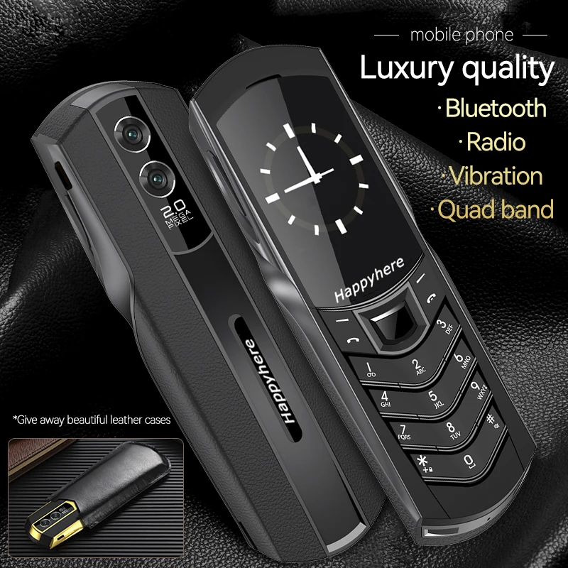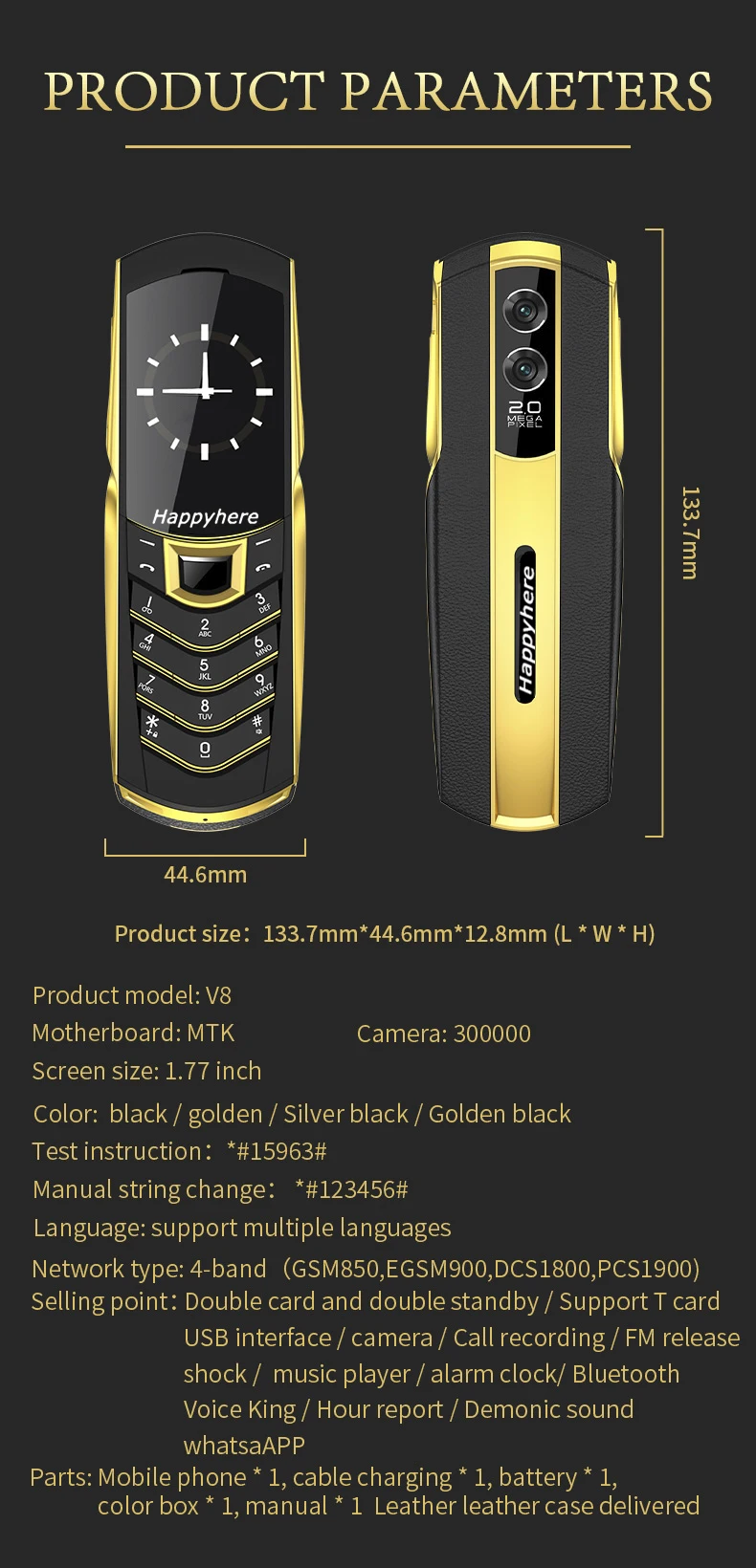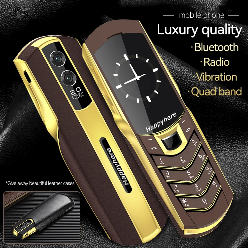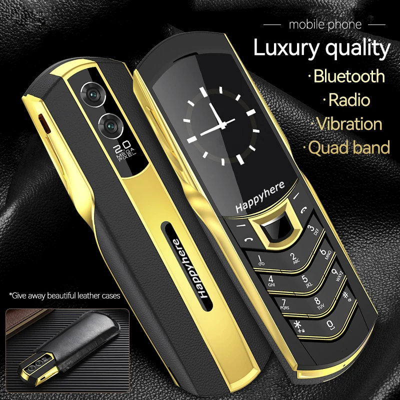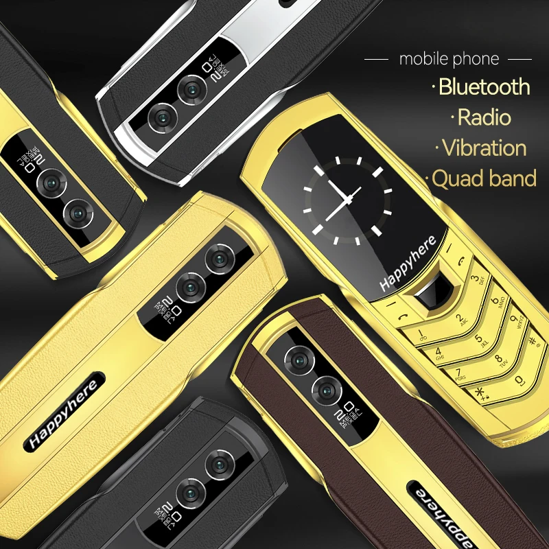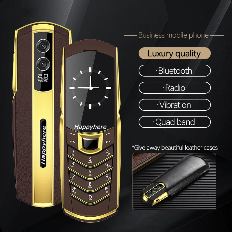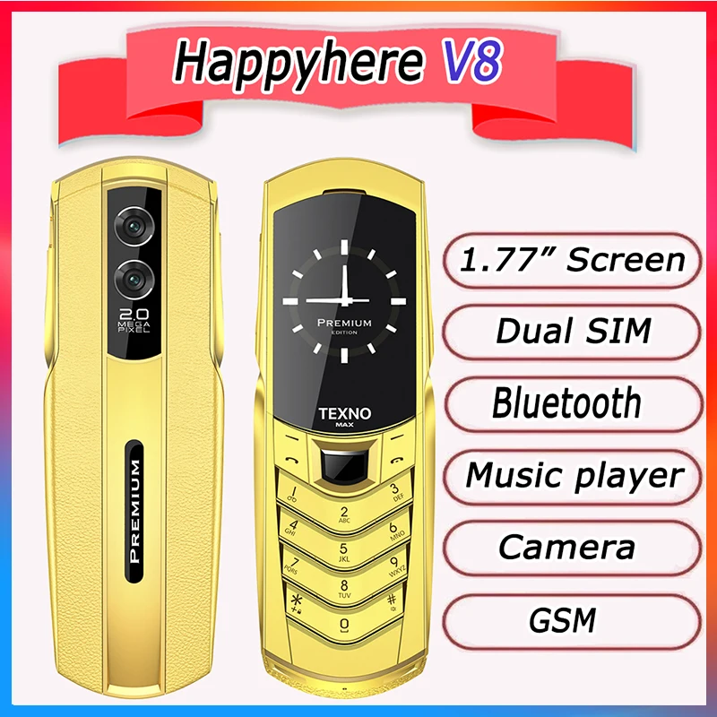 Comprar Teléfono Móvil V8 Bar de Metal hecho a mano de lujo, Funda de cuero con doble Sim, Bluetooth, Radio FM, botón pulsador, novedad