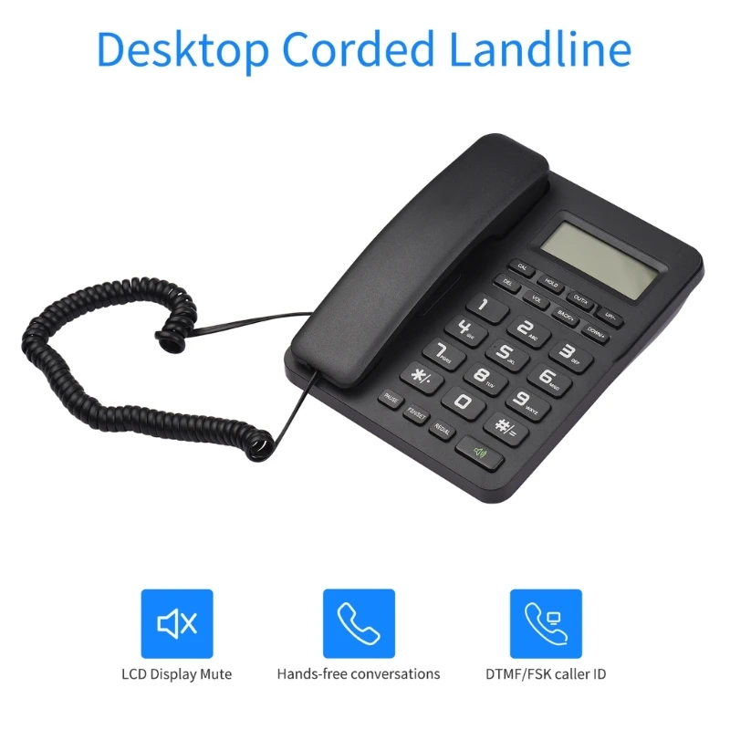Características:OotdtyEl teléfono fijo con cable de escritorio de la serie de teléfono es perfecto para las personas mayores con su diseño de botón grande y pantalla LCD, lo que hace que sea fácil de leer y usar.