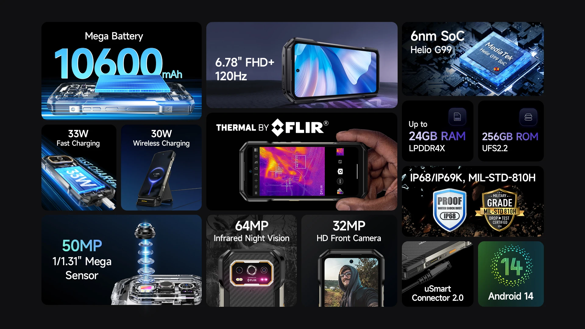 Comprar Teléfono resistente Ulefone Armor 27T 4G THERMAL BY FLIR® 10600mAh Hasta 24 GB+256 GB 6.78" FHD 120Hz Visión nocturna Android 14 Smartphone
