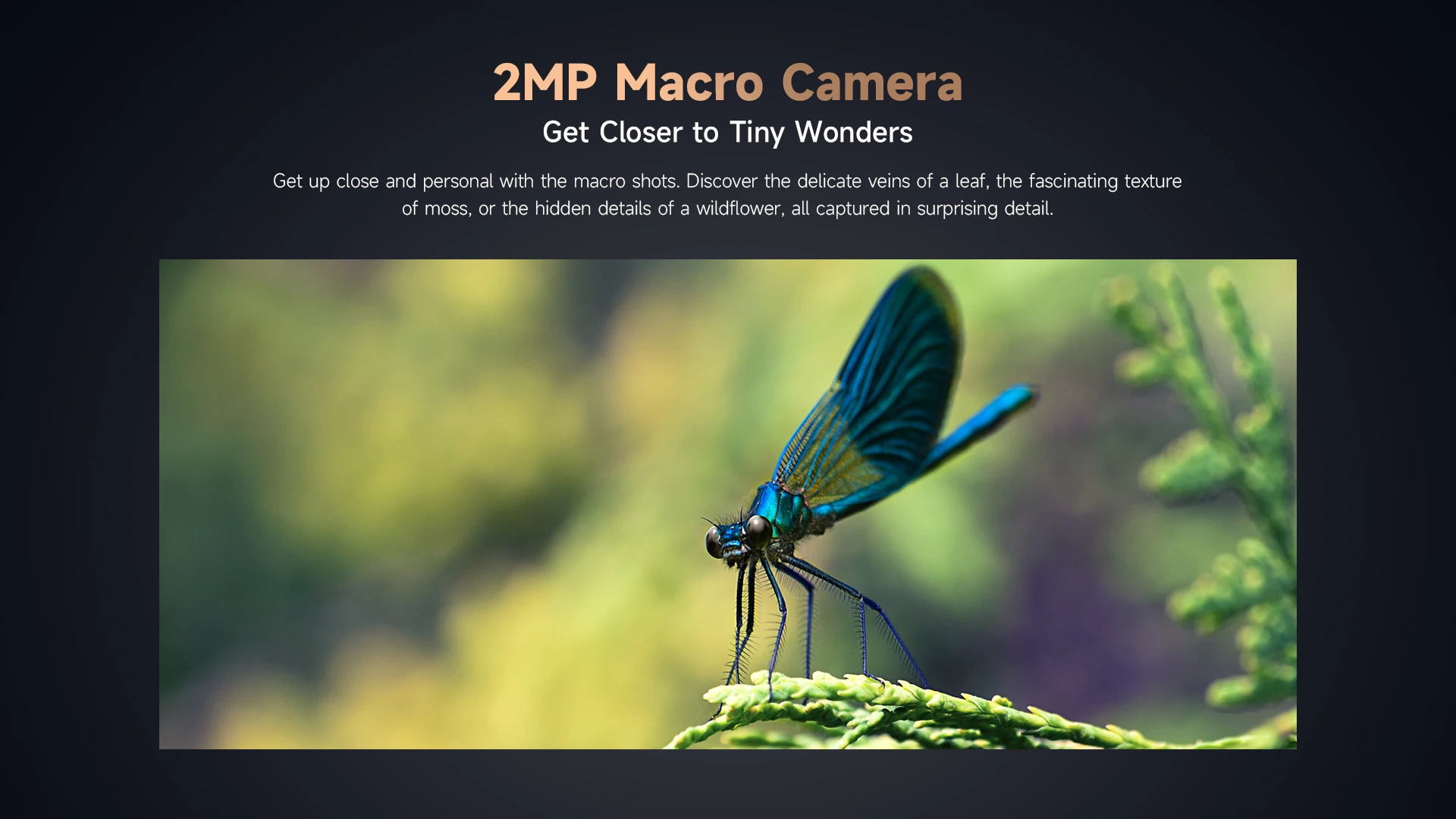 Prepárate de cerca y personal con las tomas macro.Descubre las delicadas vetas de una hoja, la fascinante textura del musgo o los detalles ocultos de una flor silvestre, todo capturado con sorprendentes detalles.