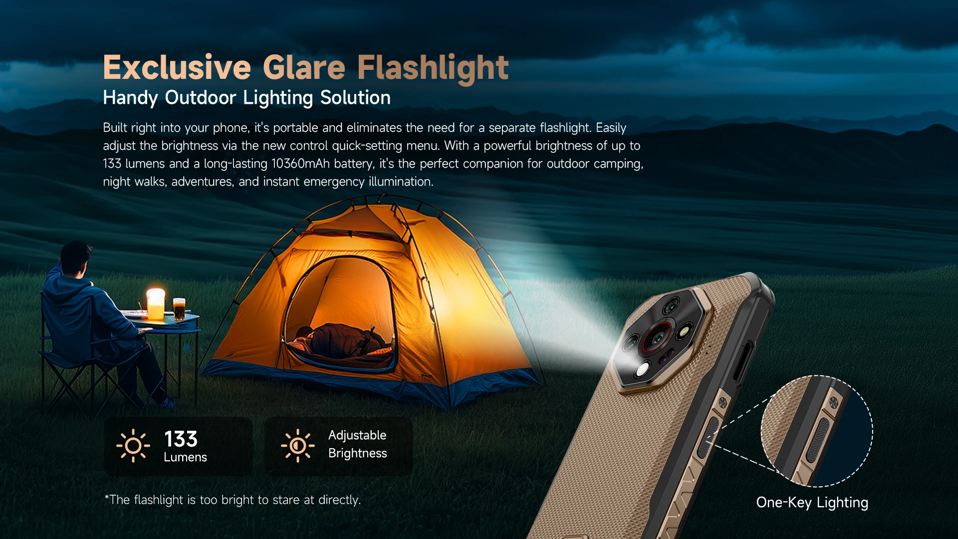 Integrado directamente en su teléfono, es portátil y elimina la necesidad de una linterna separada.Ajuste fácilmente el brillo a través del nuevo menú de configuración rápida de control.Con un brillo potente de hasta 133 lúmenes y una batería de larga duración de 10360 mAh, es el compañero perfecto para acampar al aire libre, paseos nocturnos, aventuras e iluminación de emergencia instantánea.