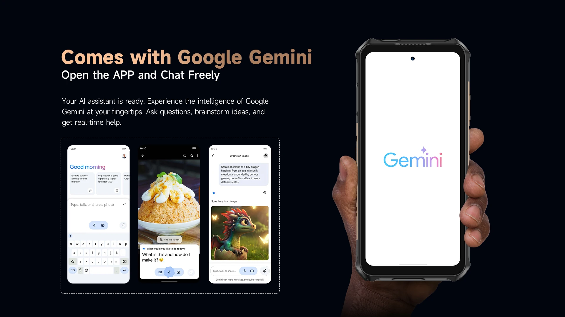 Tu asistente de IA está listo.Experimenta la inteligencia de Google Gemini al alcance de tu mano.Haga preguntas, haga ideas de lluvia y obtenga ayuda en tiempo real.