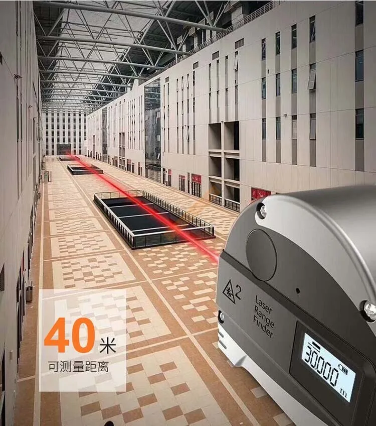 - It combines a 40m laser measuring instrument with a 5m tape measure for easier use and easy measurement at close and near distances