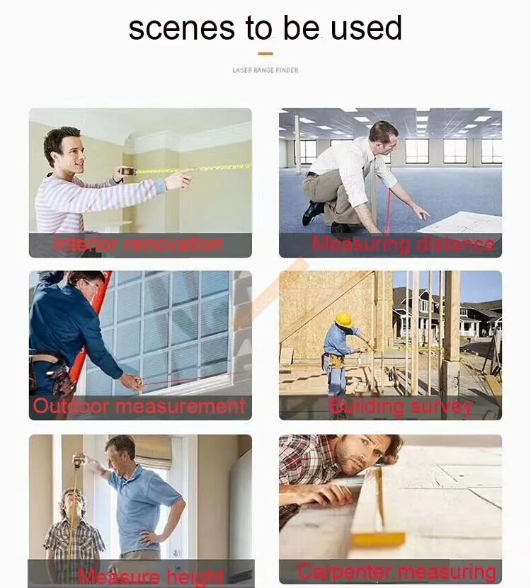 2 in 1 40M Laser Rangefinder LCD Digital Tape Measure Distance Measurer Meter Range Finder Infrared Construction Gauging Tool