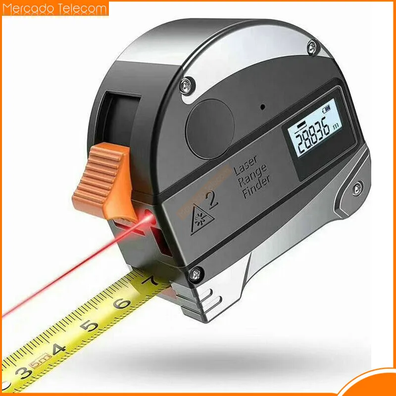 Comprar Telémetro 2 en 1, regla de cinta métrica de 5m, pantalla LCD, medidor de distancia, dispositivo de medición de edificios, dispositivo de medición de volumen de área