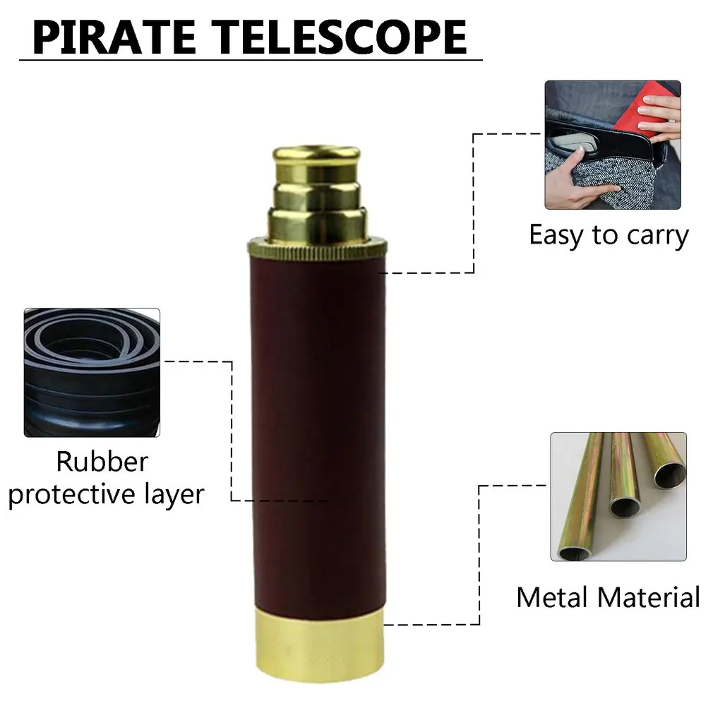 Comprar Telescopio Monocular de Piratas del Caribe, telescopio óptico náutico de latón, Spyglass marítimo para acampar al aire libre, 25x30