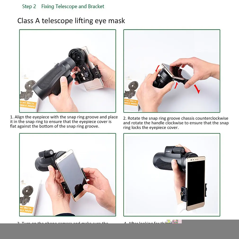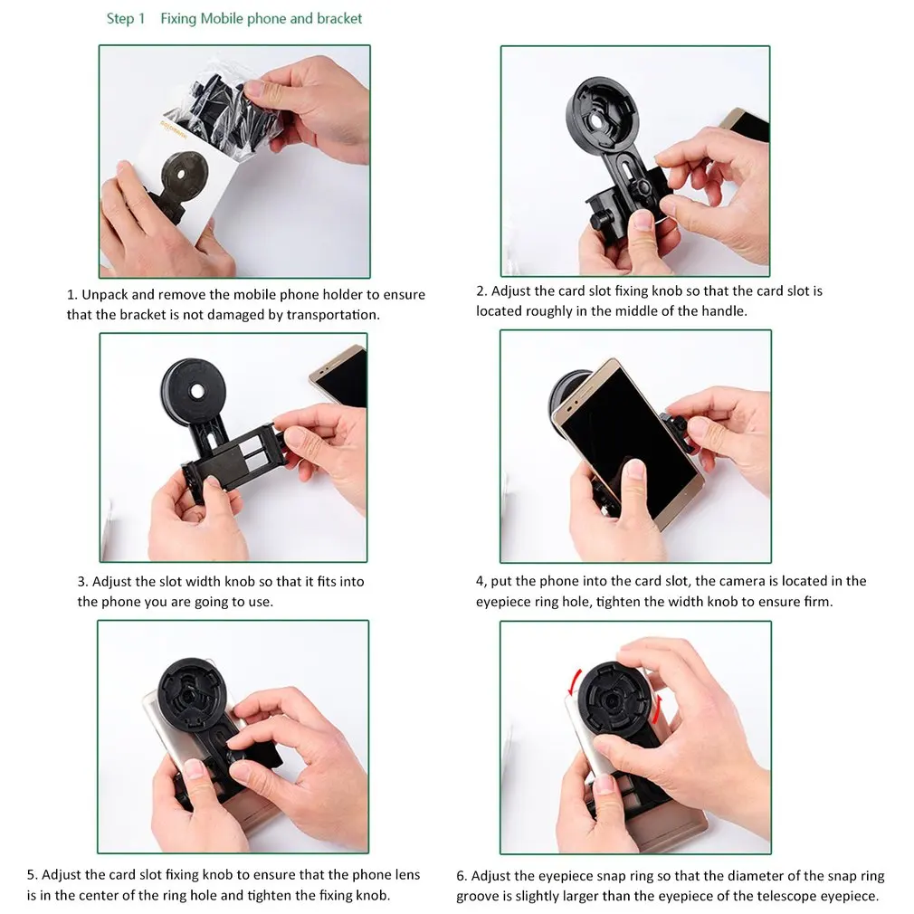 2. Soporte adaptador universal para teléfono móvil: compatible con telescopio y microscopio monocular binocular.