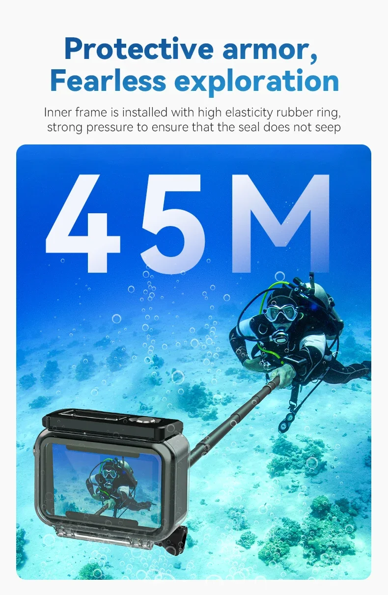 2. Seguridad adecuada. La carcasa dura, frente a un entorno submarino complejo, puede proteger eficazmente la cámara.